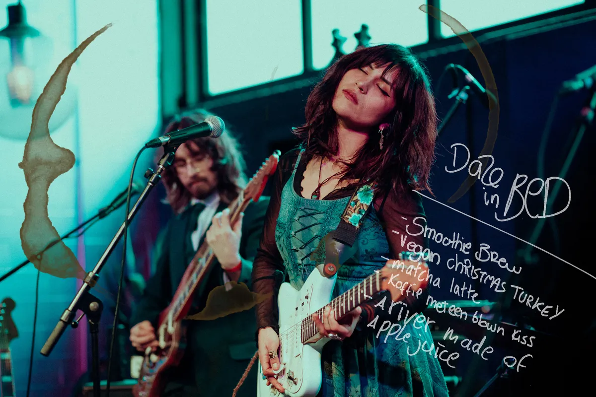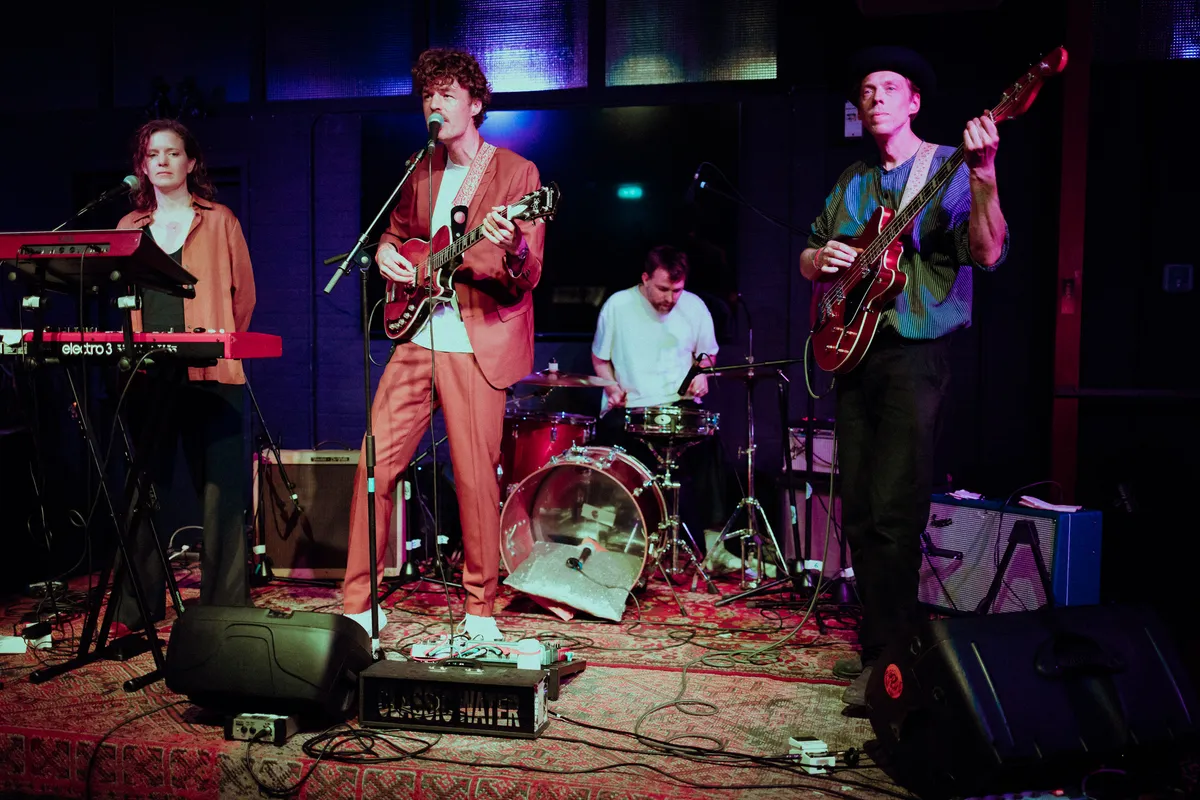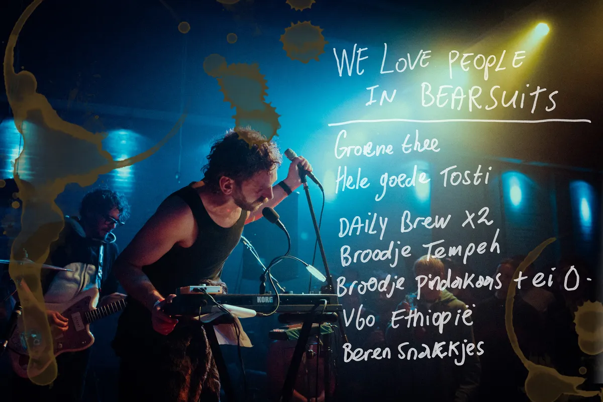 Een theedoek over een drumstel, een microfoon op een glitterkussen en melancholische dreamgaze door de speakers. Het Rotterdamse Daze In Bed trapt om 17.00 uur af en is een perfect begin. Met klanken die recht uit de 90's lijken te komen, maakt het viertal het publiek langzaam warm voor de rest van de jubileumavond. Op de banken aan de rand van de zaal liggen de gitaartassen van de bandleden, en ook in de zaal staat iedereen er nog kalm bij. Dromerig drinken ze van hun biertjes. Voor de passe-partout houders overigens een uiterst verstandige keuze, dat rustig aan doen. Zij gaan na de bandavond bij LE:EN door naar de clubnacht in De Helling, waar ze het kunnen volhouden tot 5.00 uur ‘s ochtends. Maar liefst twaalf uur lang muziek, daar is energie voor nodig. Na het optreden vragen we Daze in Bed wat ze als band zouden bestellen bij Koffie Leute. Opvallend in dat lijstje? Een rivier van appelsap. Misschien leuk voor in dat hoekje naast de spelcomputers?