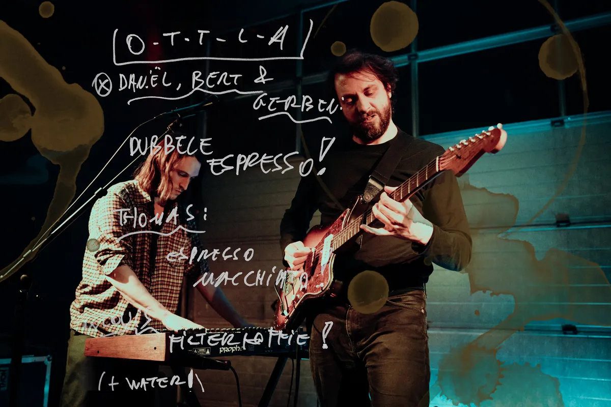 De tijd vliegt voorbij, optredens wisselen elkaar naadloos af. In het lopen van zaal naar zaal komt de zalige lucht van de Surinaamse broodjes van Moksi je tegemoet. Een luid applaus welt op bij Stage 1: het Antwerpse OTTLA begint. Het is echt vol nu, de bewegende knietjes van eerder zijn veranderd in steeds duidelijkere danspassen. OTTLA speelt fantastisch, smijten hun instrumenten door de ruimte en maken er een geheel eigen genre van. Dirk en Olivier, de eigenaren van Koffie Leute, waren niet voor niets erg blij met de toezegging van het viertal. “In hun bio stonden wel tien verschillende genres en muziekstijlen”, vertelt Dirk lachend. “En daarbij”, zo zegt een van de bandleden, “het is gewoon niet de moeite om het allemaal in uwe kop te krijgen.” Dat is helder taalgebruik: deze band blijft liever ongedefinieerd, en het staat ze ontzettend goed.