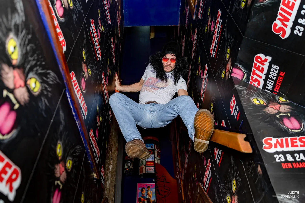 Marco vertelt over een van zijn leukste momenten op Vestrock. “We stonden in een festivaltent voor een paar duizend man. Blaas of Glory (lopend metal blaasorkest) moest spelen en wij draaiden ervoor en daarna. Vervolgens zouden we naar een caféetje gaan, waar we nog een soort van after zouden doen. Tenminste, dat was de bedoeling. Blaas of Glory was klaar met spelen, maar liep in formatie het podium af met een slinger er achteraan van 1000 man richting die kroeg. Maar wij moesten nog een paar platen draaien. Op een gegeven moment beseften we: wacht even, als die 1000 man eerder in de kroeg zijn dan wij, dan zakt het als een plumpudding in elkaar. Dus wij snel onze spullen en koffers pakken, voorbij die stoet met 1000 mensen gerend naar die kroeg. Daar stond nog een andere dj te draaien, die hebben we aan de kant geduwd. We zetten net een plaat aan toen Blaas of Glory binnenviel. Het viel precies goed in elkaar. Dat was een topavond. Die eigenaar was heel sceptisch. We waren er die middag nog geweest. ‘Ik heb liever geen gitaarmuziek in mijn zaak,’ zei hij. Het was zo’n hele hippe tent. Maar die heeft de omzet van het leven bereikt.”