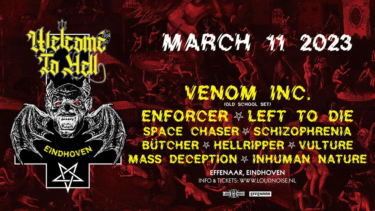 Is old-shool metal meer je ding, zet dan vooral een circeltje om 11 maart in je agena. Dan preserenteren de Effenaar en Loud Nice het Welcome to Hell festival met bands als Venom Inc., Enforcer, Space Chaser, Butcher, Hellripper, Vulture, Dark Omen, Mass Deception.
