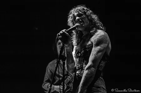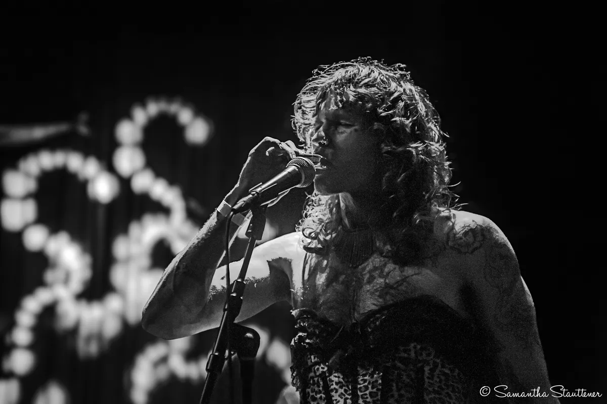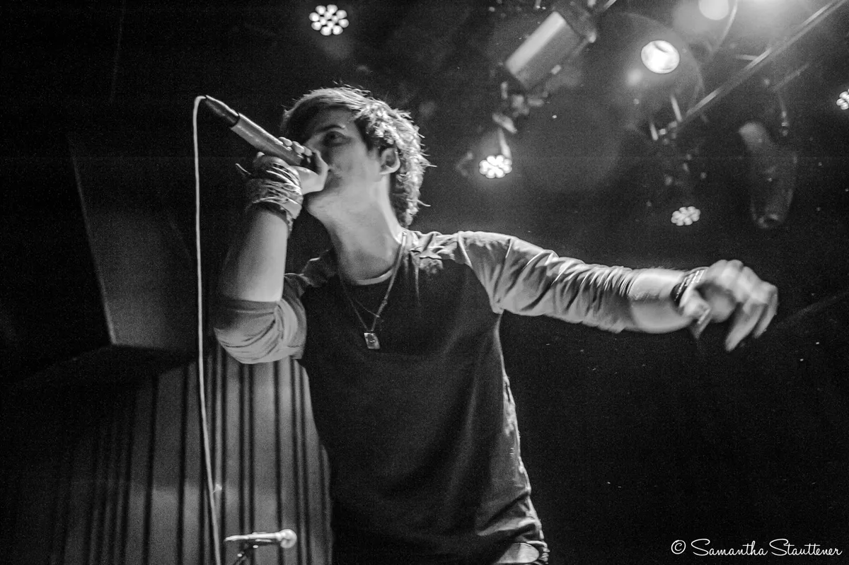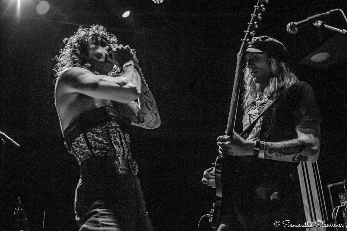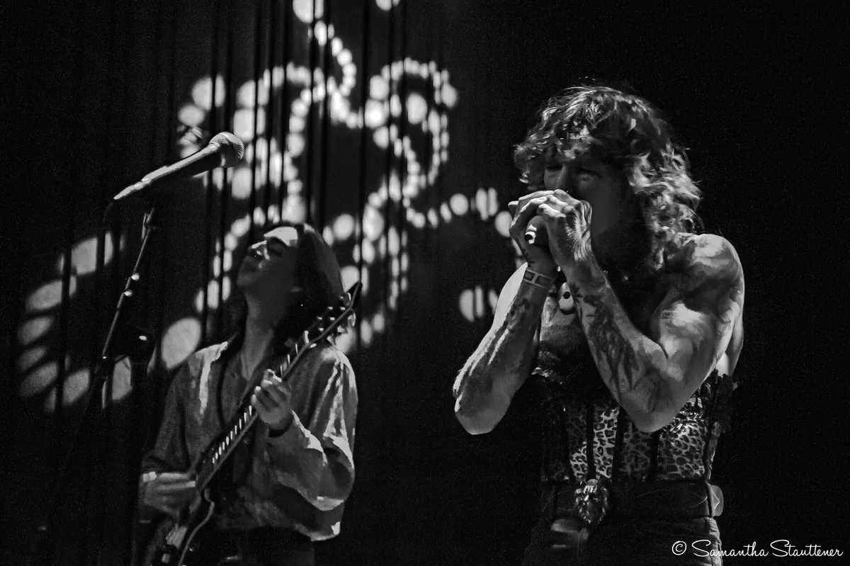 Hun opkomst is net een toneelstuk: drummer Stan zit in wifebeater op het podium en speelt al voordat de snarensectie erbij komt. Bassist Bjorn en gitarist Niels knallen er gelijk in en spelen een hele tijd instrumentaal. Zanger Joël komt halverwege struikelend op, een Elmopopje bungelend aan zijn riem.