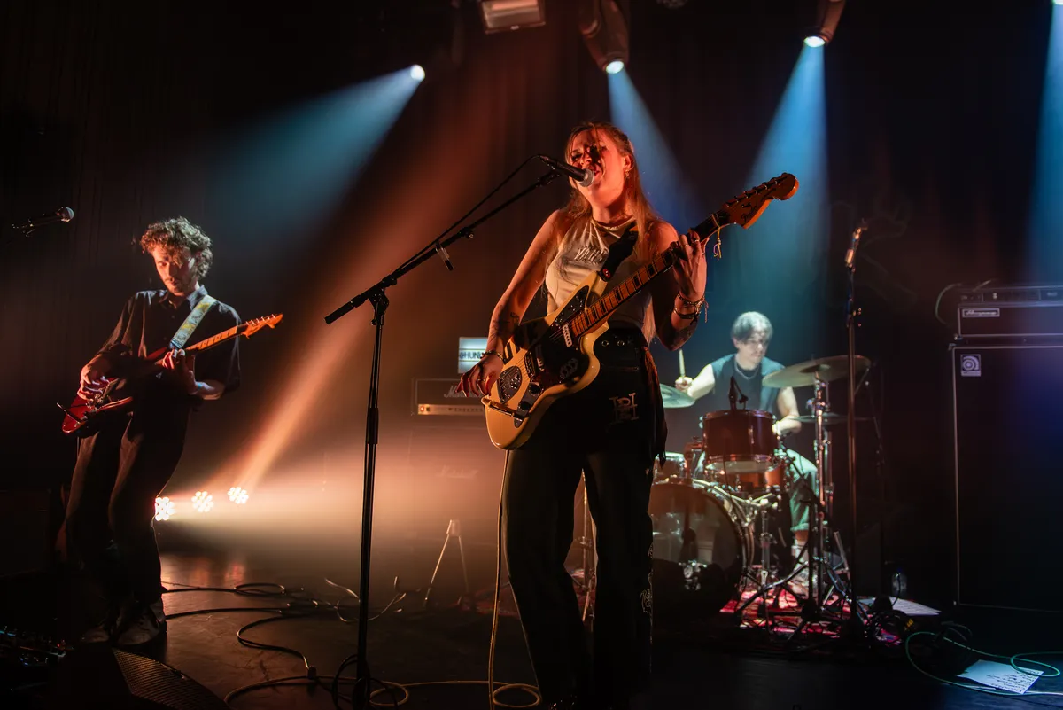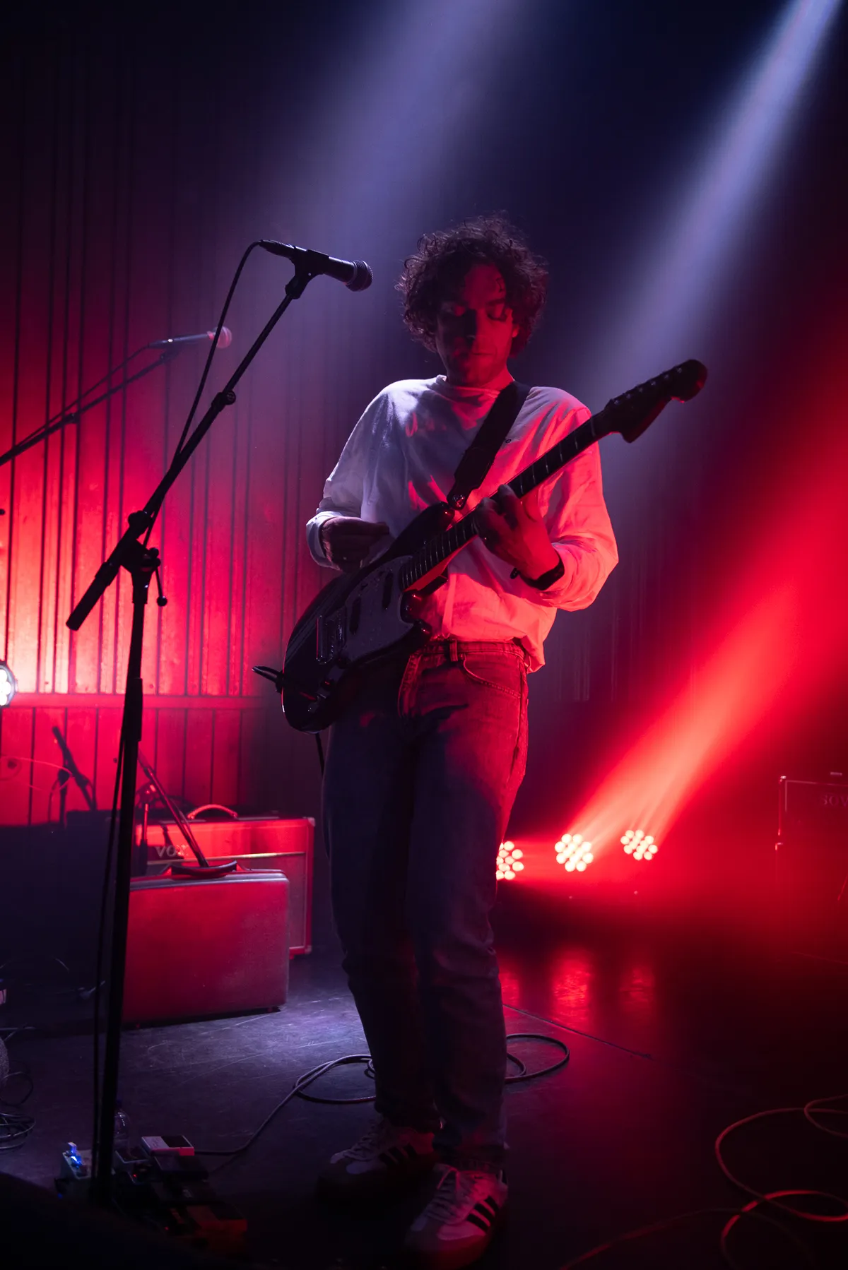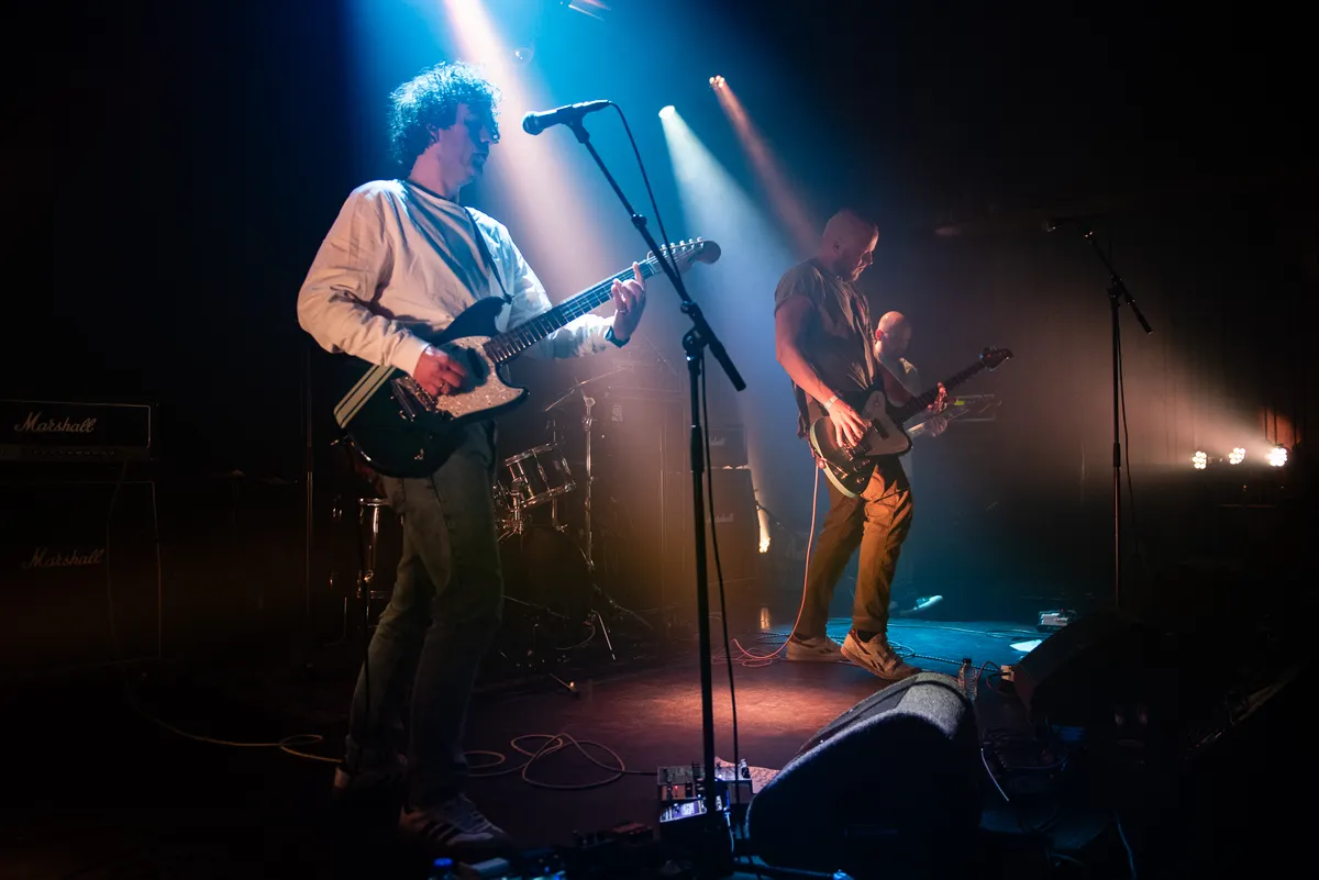 Het midden van de set is rauw, met tracks die je niet moet rawdoggen met je trommelvliezen (doppen in), behalve dan het milde 'Marrakesh', in live uitvoering met indringend gepingel. 'Capo II' is heel toepasselijk uitgevoerd met de titulaire gitaarklem, en de torenhoge bassist maakt een zangdebuut tijdens het punky 'Breedy'. De sound doet het, met een blik op de zaal, vooral goed bij de mensen van middelbare leeftijd, maar bij de eind afbrander slepen de jongelui hun vrienden mee naar voren voor een miniscule mosh. Al met al een set die cleaner was zonder het gruis compleet uit de klankkasten te tikken. Liefhebbers kunnen zichzelf in het voorjaar verblijden met een nieuwe EP.