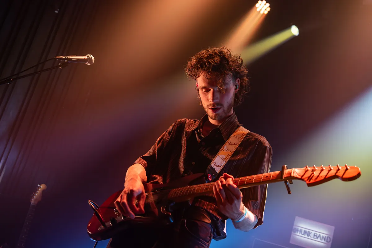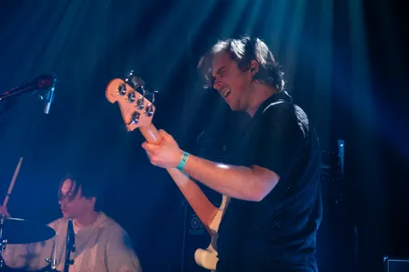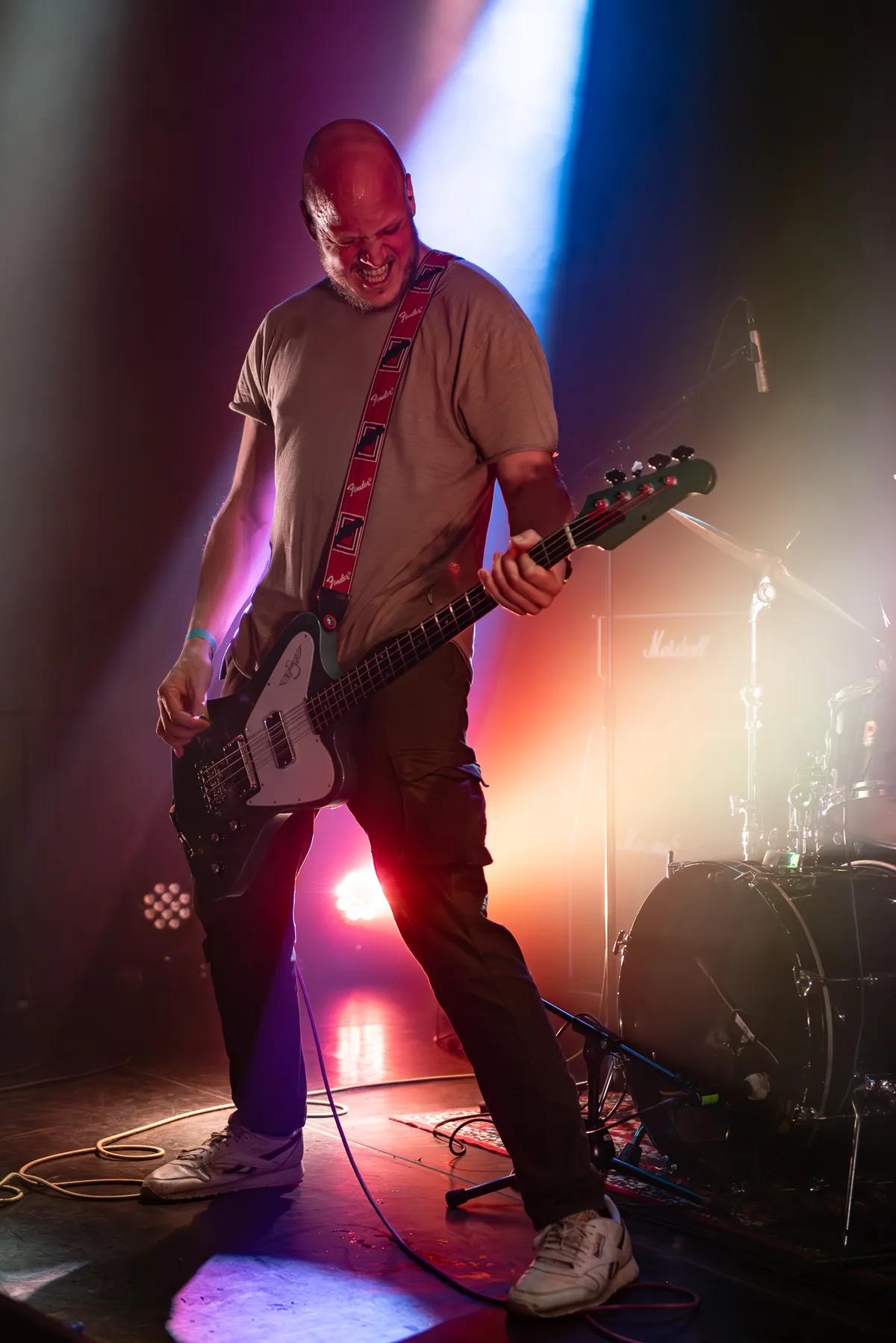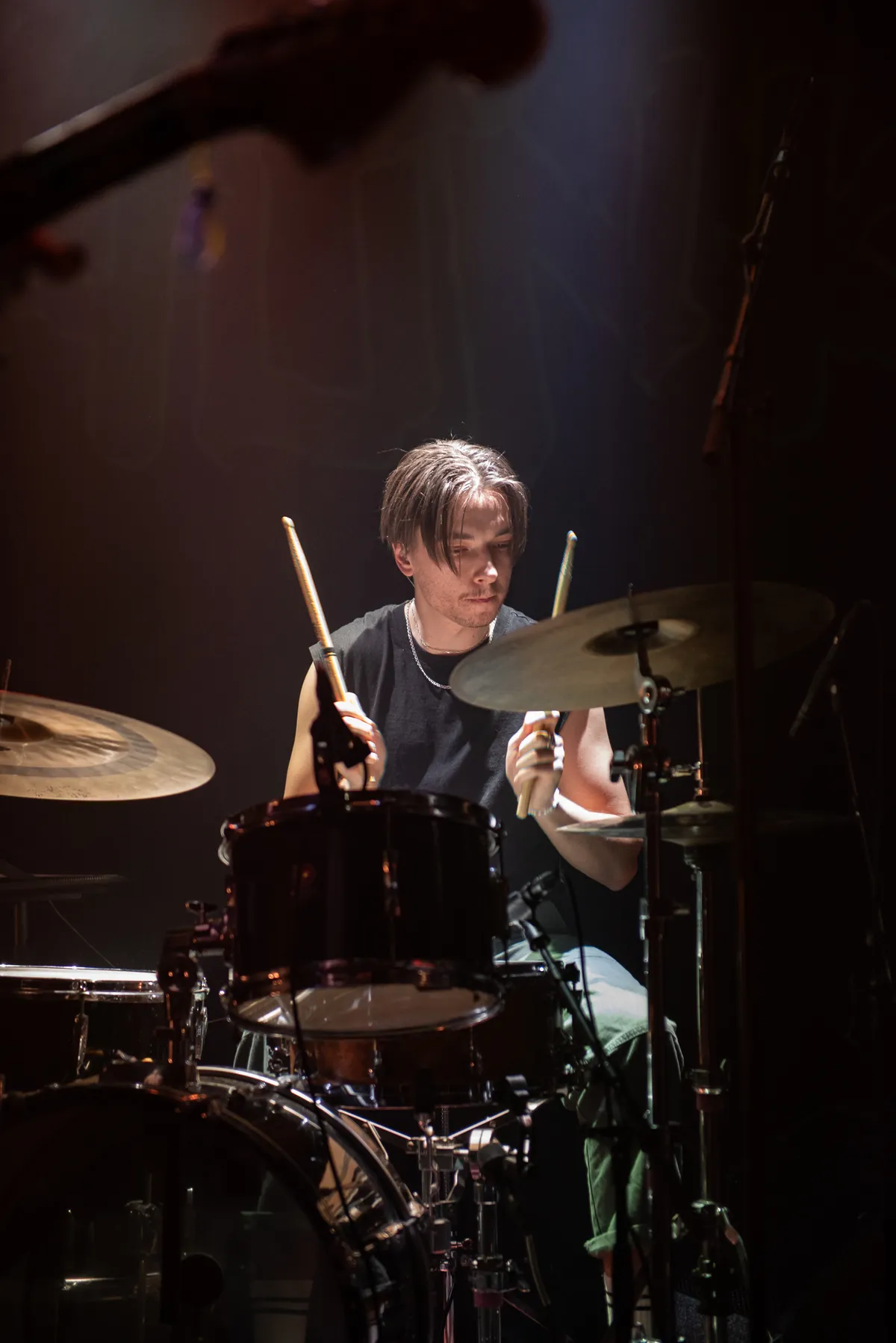 Het midden van de set is rauw, met tracks die je niet moet rawdoggen met je trommelvliezen (doppen in), behalve dan het milde 'Marrakesh', in live uitvoering met indringend gepingel. 'Capo II' is heel toepasselijk uitgevoerd met de titulaire gitaarklem, en de torenhoge bassist maakt een zangdebuut tijdens het punky 'Breedy'. De sound doet het, met een blik op de zaal, vooral goed bij de mensen van middelbare leeftijd, maar bij de eind afbrander slepen de jongelui hun vrienden mee naar voren voor een miniscule mosh. Al met al een set die cleaner was zonder het gruis compleet uit de klankkasten te tikken. Liefhebbers kunnen zichzelf in het voorjaar verblijden met een nieuwe EP.