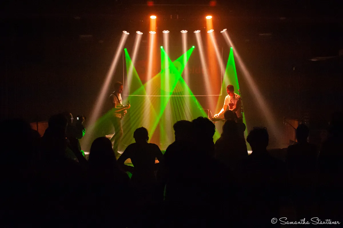 Kiwi Club brengt de CLUB in Clubavond! Ook hun recente geboorte hebben wij van dichtbij gevolgd en ook hier zijn we trots om het duo op ons podium te hebben. Waar Chris (Lion, Meet Lizard) en Giel (ScooterRoy and the Hitmachine) tijdens hun eerste show, op het Aphrodite Festival, hun muziek nog vermengden tot dansbare indie/electro met beats, worden we vanavond in een in nevelen gehulde trance gebracht. Slechts één keer onderbroken om zichzelf voor te stellen en weer door te spelen tot het ineens klaar is. Kiwi Club is duidelijk gegroeid tot een jongvolwassen eenheid. Nu nog een groeiend en vooral dansend publiek.