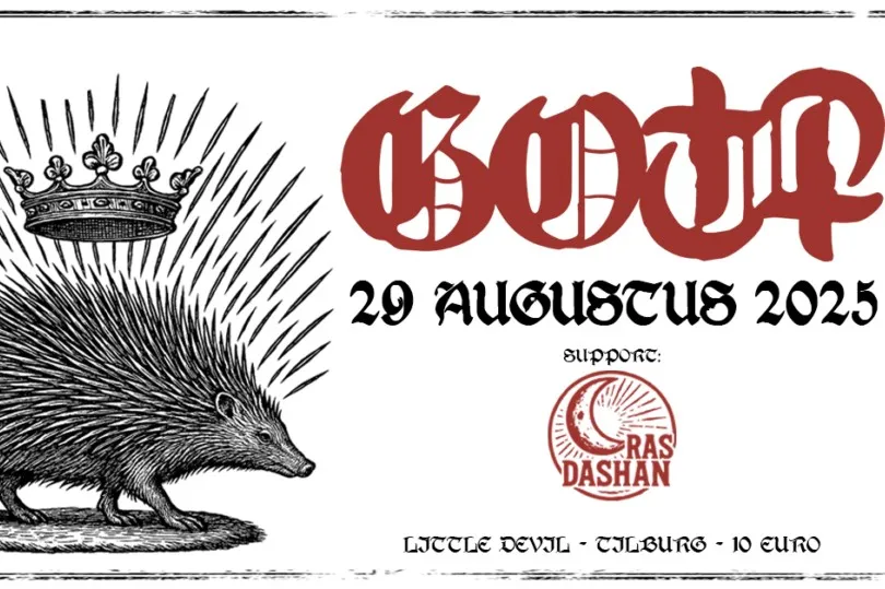 Na jarenlange omzwervingen maakte het Tilburgse occulte rockgezelschap Gott afgelopen april dan toch zijn langverbeide livedebuut op Roadburn. Daarmee lijken de dame en heren de smaak van het optreden te pakken te hebben gekregen, want op de laatste vrijdag van augustus kun je ze 's avonds treffen in Little Devil, waar ze met steun van Ras Dashan ongetwijfeld een memorabele show gaan weggeven. Ben erbij.