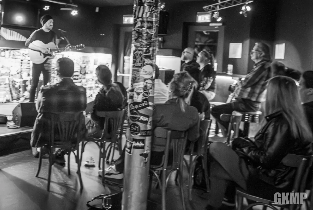 De intieme huiskamersetting maakt dat Walker zijn setlist, zo ver hij deze al heeft, overboord gooit en zich richt tot de zaal. “Er zitten hier toch zeker een paar mensen die mijn muziek kennen. Wat wil je horen?” Mees uit Rotterdam stelt de beste man direct voor een dilemma. Want voor ‘Marazion’ staat zijn gitaar eigenlijk niet goed gestemd. Later volgt er nog een ongemeende Engelse verwensing omdat ‘Pictures’ wordt aangevraagd. Een nummer dat hij nooit live speelt. Maar hij laat zich niet kennen. We krijgen een primeur. Twee zelfs, want ook ‘Between Times’ krijgt zijn vuurdoop in Zeeuws-Vlaanderen. Tussen de zwaarmoedigheid door zijn de droge stand-up grappen van de Engelsman een welkome afleiding. Onderwijl hij zijn gitaar stemt praat hij met het publiek. En geeft een prachtig inkijkje in de wereld waarin hij werkt.