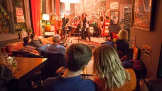 De oplettende Leidse kroegtijger zal het vast opgevallen zijn, Jantje van Leiden is een tijdje gesloten geweest. Gelukkig hebben vijf stamgasten het heft in eigen handen genomen om de kroeg draaiende te houden. Extra mooi om te zien dat Jantje van Leiden er deze kroegentocht gewoon bij is. Op het kleine, geïmproviseerde podium staan vijf jonge gasten. Ze vormen het Tijn Koenen Quartet, met tenorsaxofonist Gideon Tazelaar als vijfde musketier. Ze spelen strak en staan duidelijk genietend op het podium. Het gezellige kroeggeluid blendt perfect met de rustige en behouden sound van het vijftal. Onder het zachte rode licht zingt de zanger dromerig maar vastberaden zijn teksten en deint daarmee rustig mee met de vibe van de kroeg. 'Please don’t talk about me when I’m gone' is te horen… You’re damn right! (SK)