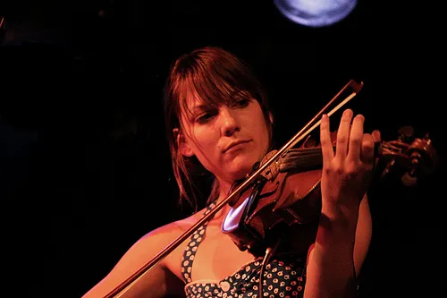 Dit laatste klinkt goed op papier, maar het geluid wat Barnes hiermee voortbrengt staat in schril contrast met het prachtige spel van trekzak en viool. Het is soms te hard waardoor de andere instrumenten moeilijk te horen zijn. Daarnaast is het wat monotoon en bovendien zwabbert de muziek, omdat het ook niet altijd even strak gaat. Wanneer er naast de twee een goede percussionist op het podium had gestaan, was het flink toegestroomde, goedwillende publiek ongetwijfeld overgegaan tot een kolkend polkafestijn. Na een aantal nummers valt de stroom even kort uit en staat de hele tent in het donker. De twee lossen het snel op door midden in het publiek te komen staan en onversterkt een nummer te spelen. Dit wordt met luid gejuich begroet. Het toont ook waar de instrumenten eigenlijk voor gemaakt zijn: om midden in een mensenmassa met het volk tekeer te gaan. Er wordt flink meegeklapt en het scheelt wederom één haar of de gehele Drôhme verandert in een hossende mensenmassa. Wanneer A Hawk and A Hacksaw werkelijk de voetjes van de vloer wil krijgen, lijkt het maar een kleine stap naar A Hawk and A Hacksaw and A Drummer. Tekst: Johan Lammers / Foto's: Paul van Dijk