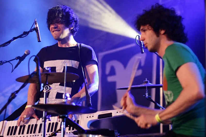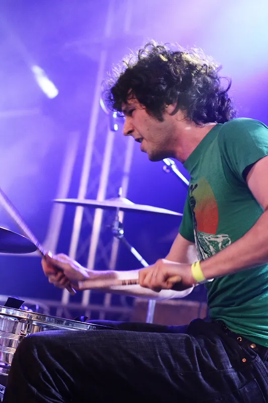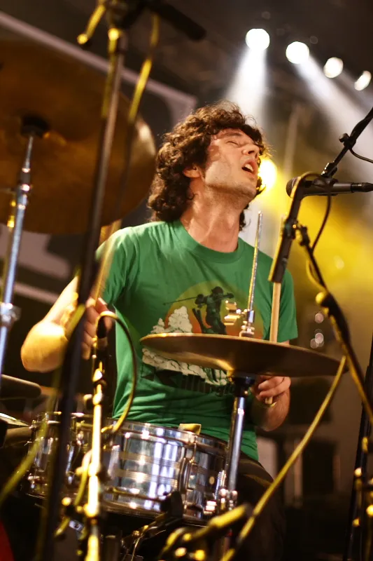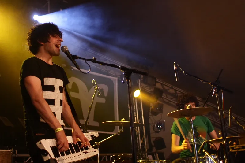 Geen wonder dus dat er bij Shy Child onafgebroken werd gedanst door een klein - het was nog vroeg - maar enthousiast publiek. Het tweetal maakt officieel 'nu-rave', en dat zou een mengelmoes moeten zijn van electro, dance, disco en punk. Daar stel ik me iets beukends bij voor, maar in het geval van Shy Child is het eerder 'tropisch swingend', alhoewel wel wat noisier dan op het gemiddelde Copacabanastrand. De zomerse ritmes van het duo brachten de voorste rijen meteen in beweging en dat bleef zo tot het eind. Met z'n tweeën klonken ze alsof er een enorme feestband op het podium stond. Het is een prestatie als je dat weet te bereiken met alleen drums en een keytar (dat is een 'omhangkeyboard', een instrument dat we kennen van de groten der aarde, zoals Modern Talking en Weird Al Yankovic).