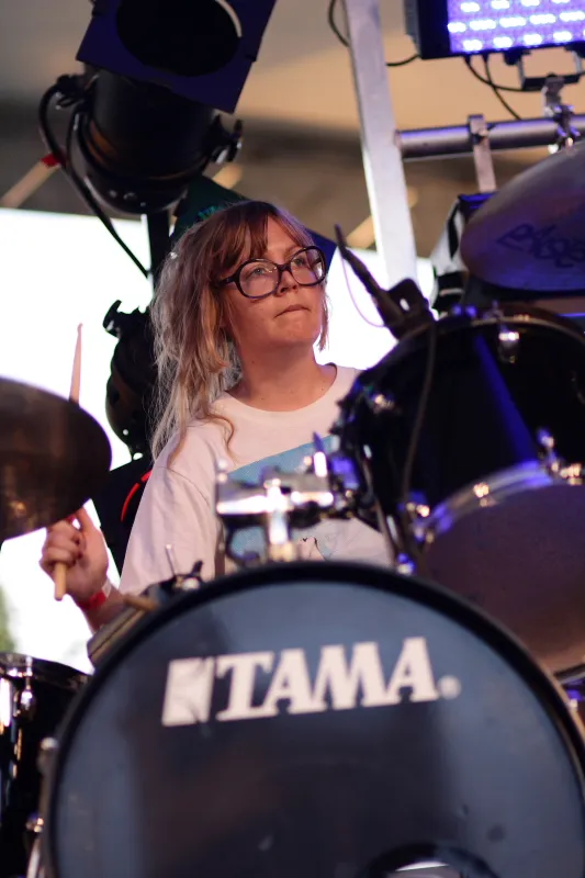 Erase Errata zorgde op de zondagavond voor een merkwaardige noot. De toevallige passant zag een wel erg vreemd bewegende bassiste en een drumster met een gigantisch stel brillenglazen. Gelukkig zag 3VOOR12 meer, en ook nog eens onder het genot van het uitzicht op een ondergaande zon.
