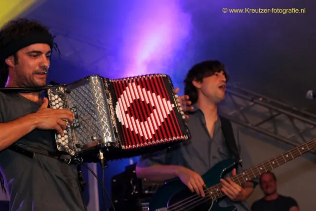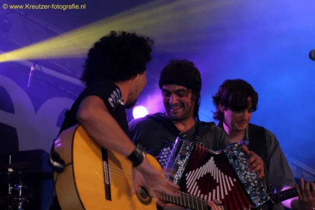 Dit is muziek die blij maakt, uitnodigt om te dansen en het zomerse gevoel tot in je tenen laat doordringen. Op het laatst wordt nog een stukje uit ‘Eye of the Tiger’ verwerkt in een van de refreinen, maar dan wel volledig in de bijpassende spaanse mestizo-stijl. Na het optreden blijft het publiek overrompeld achter, moe van het dansen. Ja, die vergelijking met die apen is zo slecht nog niet. Tekst: Klaas-Jan Grafe / Foto's: Hans Kreutzer