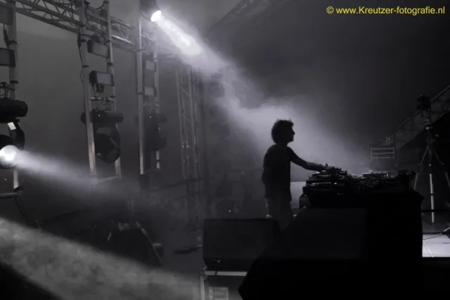Van dansen was nog geen sprake toen Roosjes eigen Monokreck rond acht uur ’s avonds aftrapte. De meeste mensen uit het publiek leken slechts toevallig in het Waalpark verzeild te zijn geraakt en knikten hoogstens welwillend mee met één van ’s mans hypnotrance, electrominimal, of technonewwave mixerijen, maar in de kleermakerszit op het gras zitten, dat bleven ze. Dit lag waarschijnlijk aan het vroege uur, de vrijblijvendheid van het festival en de bescheiden opkomst. En inderdaad: tegen het eind van de set, toen Monokreck meer richting melodieuze acidhouse ging draaien en het wat drukker werd, ging al menig voetje van de vloer.