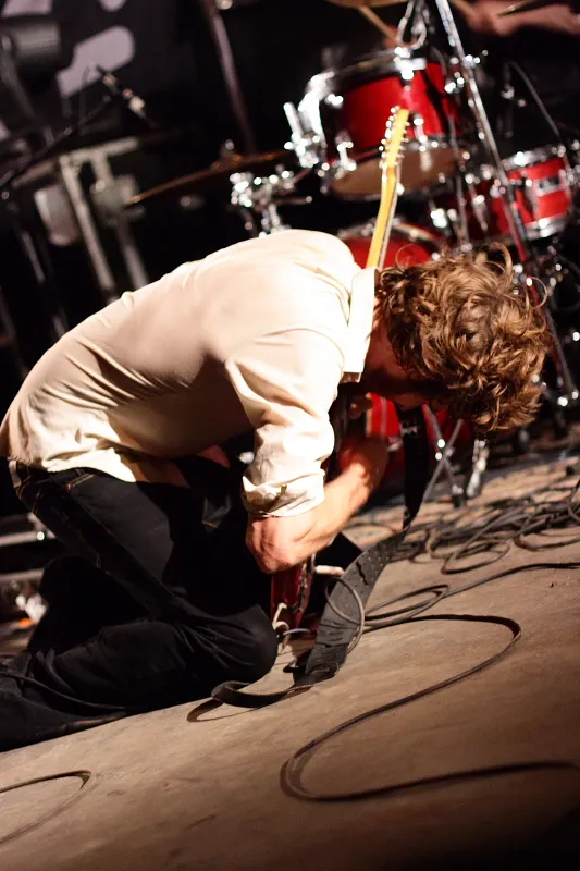 En dan, het duurt even, gebeurt het. The Drones spelen hun hoekige gitaartracks, opgestuwd door de bassiste die de ganse show met haar rug naar het publiek staat, en langzaam maar zeker begin je mee te knikken. Je hoort het gieren van het Fender-instrumentarium, de feedback gaat dwars door je beenmerg en alles vliegt harder uit de bocht dan de Spyker van Christiaan Albers tijdens de F1. De indie-gitaarrock kent een flinke kwinkslag en geeft steeds stof tot nadenken, echter het onderbuikgevoel overheerst. De drie heren en een dame pakken je bij de strot en nemen je in straaljagervlucht mee langs alle hoeken en gaten van de rockmuziek en weer terug. De aanwezige liefhebbers schreeuwen om meer en ze krijgen het. Een stevige toegift lang gieren de gitaren harder dan ik vooralsnog op heel de Affaire gehoord heb. The Bees zijn brave honingbijen; The Drones zijn de horzels die steken tot het je raakt. Tekst: Jasper Konijnenbelt / Foto's: Dennis Stempher