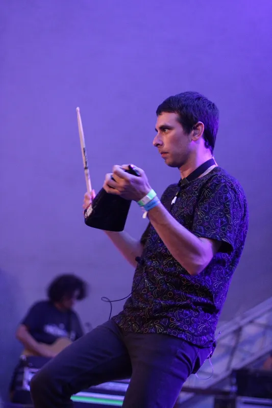Het publiek reageert er goed op. De voorste regionen van het publiek dansen, springen en klappen mee en in het publiek is zelfs iemand die haar eigen koebel heeft meegenomen. Daarachter is het iets rustiger, maar vrijwel iedereen knikt op de maat van de muziek mee met het hoofd. The Rapture laat zien dat het een uitstekende mix kan maken tussen dance en rock en spreekt daarmee een brede groep liefhebbers aan. Tekst: Klaas-Jan Grafe / Foto's: Dennis Stempher