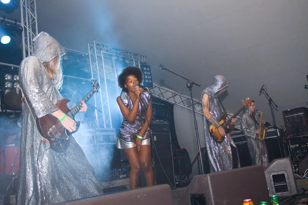 Het is wel degelijk mogelijk! En hoe! Leo Smee steelt zelf de show door ongelooflijk dansbare, complexe en vooral pompende baslijnen te spelen, die door zijn broer aangevuld worden met enorm strakke drumpartijen. Gezien de zwaarheid van het werk: een ritmesectie om nachtmerries van te krijgen. Tel hierbij op een trompet, een gitaar, keyboards, een viool, een cello, een saxofoon, nog wat percussie en een schreeuwende, springende zangeres en een goed geoliede invasiemacht van smaakvolle muzikale buitenaardse wezens is geboren. En aan het einde van de set aangekomen, net wanneer je denkt: “Ok, dit is echt geniaal, maar nu ken ik het kunstje wel een beetje” knallen de heren en dames er keihard bovenop door twee pure snoeiharde doom-deathmetal-nummers te spelen met Leo Smee zelf brullend op de vocalen.