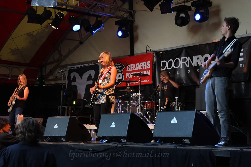 Na de lekkere opener 'New generation' kabbelt de rest van het optreden een beetje door. De band voert de nummers prima uit, maar maakt niet bepaald indruk. Het lukt ze niet het publiek bij de show te betrekken. Sterker nog, het aanwezige volk staat lekker ontspannen te keuvelen en een biertje te drinken. Of de muziek van SAT2D is gewoon niet spannend genoeg, óf het komt er vanavond niet uit. Pas bij het nummer 'Sick' wordt het gaspedaal eens lekker ingetrapt, en warempel: respons van het publiek! Het laatste nummer van de set is ook erg lekker, met wederom een hoofdrol voor zangeres Kelly, ditmaal met een heerlijke gitaarsolo. Snowwhites and the Two Dwarfs weet vanavond niet te overtuigen. De nummers zijn op zich goed, maar het vliegt nooit eens lekker uit de bocht. Ze zijn echter nog erg jong en hebben met frontvrouw Kelly goud in handen. Tekst: Rob Malschaert / Foto's: Bjorn Berings