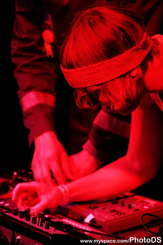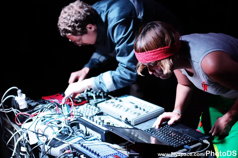 Om zowel de regen als de drup te vermijden schuilen mensen onder de witte opblaasluifel drie rijen dik zowat tegen de lage tafel van Eats Tapes aan. Zo wordt het eerste deel van het concert in knusse sfeer gehouden. Naarmate de set uitbundiger wordt, wordt het droger en drukker en verspreidt het publiek zich binnen en om het hekwerk van het Ruïneterreintje. Dit alles al dansende, knikkende en wiegende, want het duo uit San Fransisco weet prima pompende, kraakheldere techno met elektroinvloeden uit de verschillende analoge instrumenten te toveren. Gregory Zifcak, de mannelijke helft van het stel, is het gehele concert voorovergebogen en in opperste concentratie bezig met het draaien aan een paar honderd knopjes, loopjes, kastjes, schuifjes en lampjes van een keur aan sequencers, synths, drummachines, cassettespelers en een midi Nintendo.