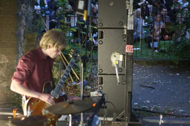 De drummer van de herrieschoppers ragt op volle oorlogssterkte op het geïmproviseerd drumstelletje. Door de felheid waarmee het setje bewerkt wordt, krijg je bijna medelijden met het materiaal. De korte, maar hevige set van de Noren grossiert in tegentonen, atonaal gebeuk en vreemde tempi. Het is zowel boeiend, maar door herhaling van eenzelfde soort noise-core-kunstje tevens erg eentonig. De als laatste gespeelde geluidseruptie laat wel een ander segment van Moha! horen; deze gaat meer richting live breakcore en vormt het hoogtepunt van de set. Presentatie en band (o.a. door afwezigheid van vocalen) blijven afstandelijk en de aangekondigde lichteffecten blijken niet meer dan wat tl-buizen en een bouwlamp om de stiltes tussen de nummers (?) te vullen. Moha! is vooral een heftig intermezzo, maar niet meer dan dat. Tekst: Eelco van Eldijk / Foto's: Edwin Niemantsverdriet