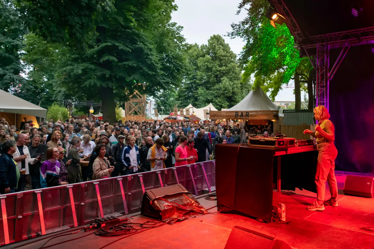 Tegen het einde van de set geniet Alberta Balsam zichtbaar. Staat ze in het begin nog vol in focus achter haar tafel, gaat ze inmiddels helemaal los. Breed lachend en dansend net als het publiek vooraan. Een set die het publiek een kick geeft en op het Valkhof houdt.