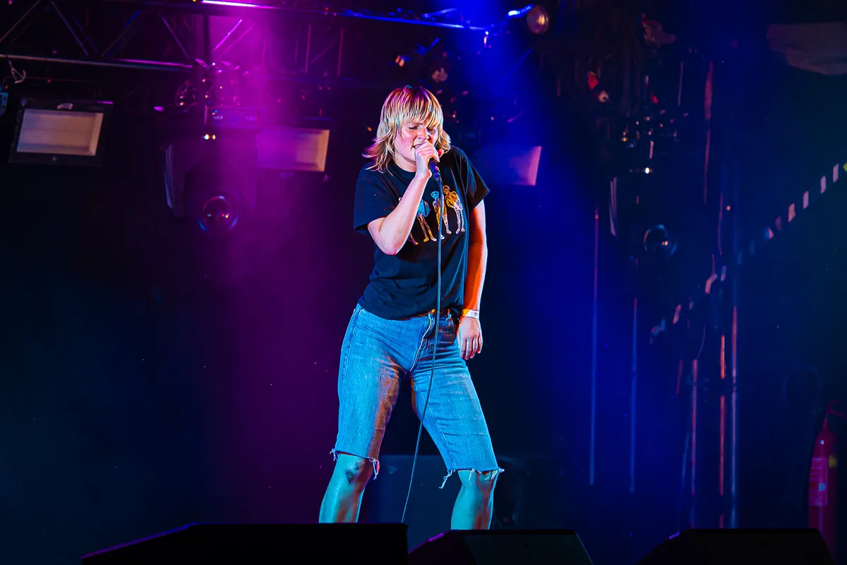 De hele avond is het Arc-podium flink gevuld met bands bestaande uit minimaal vier leden en veel instrumenten. Dat is helemaal anders als om kwart voor tien de Engelse Billy Nomates het podium betreedt. Er staat slechts een laptop en zij is gewapend met een microfoon.