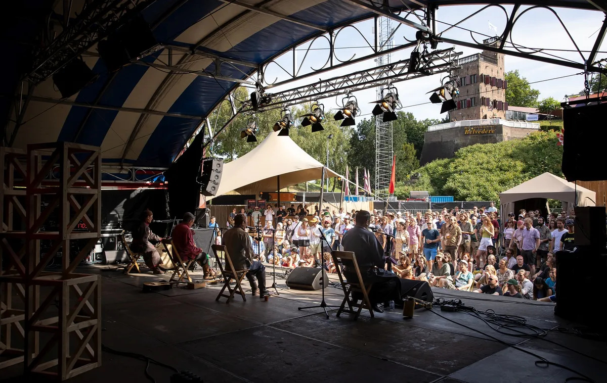 Nieuw op de Vierdaagsefeesten en het Valkhoffestival is het Podium Bloem. Waar voorheen de Hennes Latin Stage stond heeft het Valkhof Festival onder meer samen met Otis, Music Meeting en Baobob een nieuw podium neergezet voor een ontdekkingsfestival. Wereldmuziek, jazz, soul, funk. Vandaag de traditionele, rituele keelzangen van Huun-Huur-Tu uit Toeva. Een autonome republiek binnen de Russische Federatie ten noorden van Mongolië. De traditionele keelzang van Huun-Huur-Tu kenmerkt zich door een geluid waarbij een grondtoon wordt geproduceerd en tegelijkertijd een boventoon die meer aan fluiten of windgeruis doet denken. Het viertal bestaat sinds 1992 en brengt deze bijzondere keelzang met traditionele zelfgemaakte Toevaanse instrumenten met verwerking van geitenhuiden en paardenhaar.