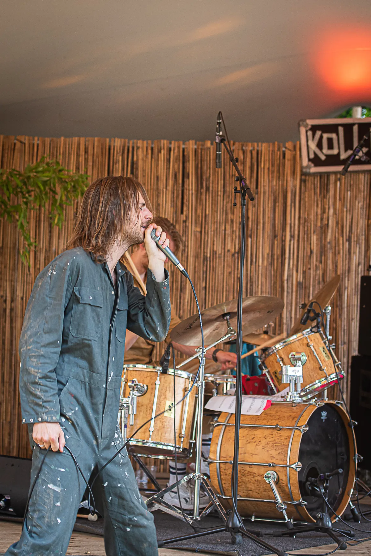Op de warmste dag van de Vierdaagsefeesten, met temperaturen van 39 graden, opent KOLLEE op het heetst van de dag onder het tentdoek van het Entree-podium. KOLLEE bestaat uit de Nijmeegse zanger en componist Stefan Kollee op gitaar en zang, en drummer Imanishi Kleinmeulman. Stefan Kollee zelf kennen we ook als frontman van de The Naked Sweat Drips (TNSD) en heeft op 2 september in Merleyn onder de naam KOLLEE de release van zijn zelf ingespeeld debuutalbum Proof Of Existence. Vandaag horen we dan ook uitsluitend nummers van dit nieuwe album vol rauwe postpunk met psychedelische uithalen.