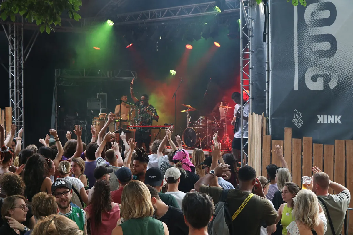 Woensdagavond, kwart over zeven. Temperatuur in het Valkhofpark nog steeds rond de dertig graden. De derde dag van tropische temperaturen en vandaag ook nog eens extra benauwd door het drukkende weer. In al die warmte voelt Bnnyhunna als een oase, als een frisse bries. De warme jazzy klanken zijn rustig genoeg om het publiek naar het podium te lokken. De charme van Bnnyhunna zorgt vervolgens dat de voetjes van de vloer komen.