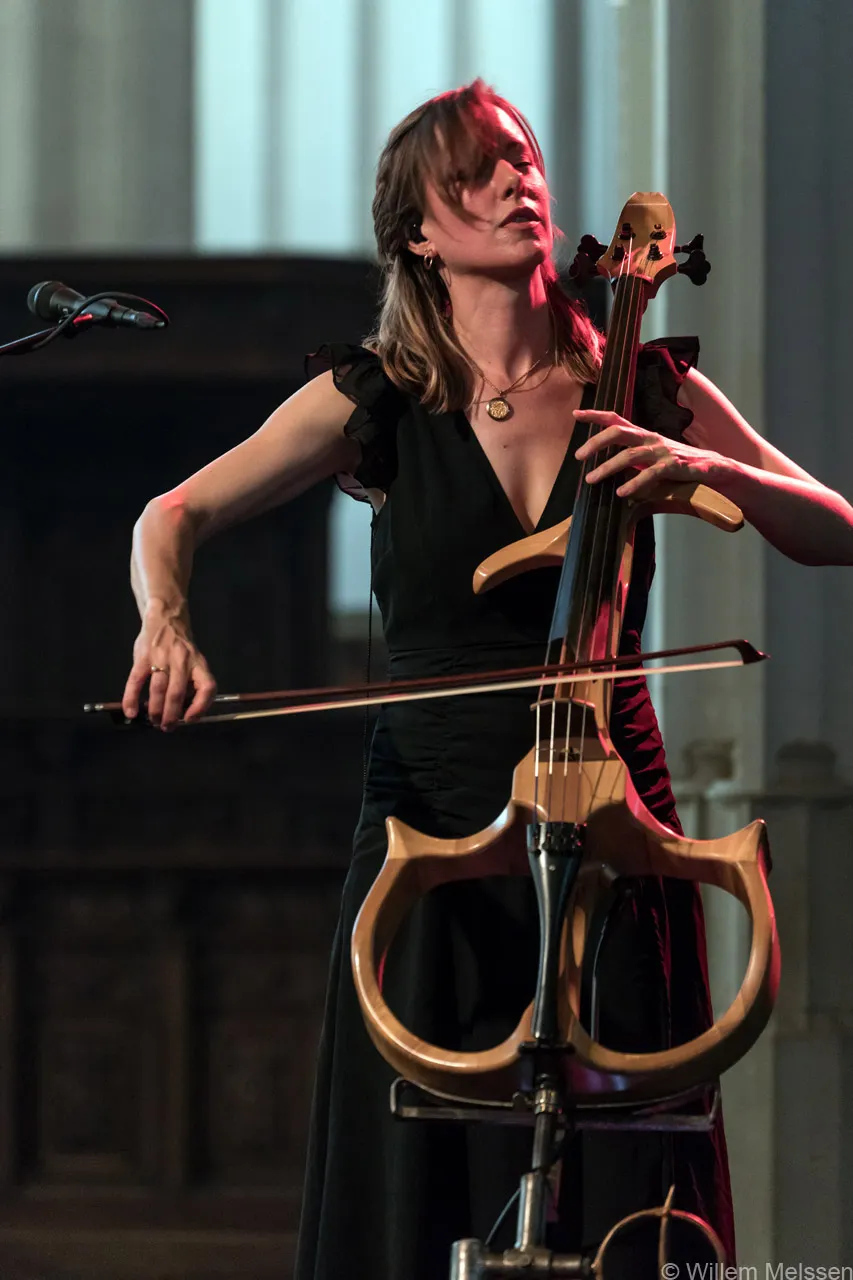Jo Quail speelt elektrische cello, een luchtig ogend instrument waarmee ze toch een heel orkest schept. Via loops wordt haar muziek steeds gelaagder en spannender en vult de kerk met soundscapes vol duister bassende ondertonen. Je ziet ruige landschappen en woest rollende golven. Heavy en dromerig tegelijk.
