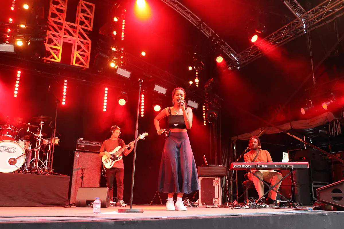 En daar voelt de 21-jarige zich zichtbaar thuis. Ze is spontaan en komt heel sympathiek over, haast schattig hoe ze telkens verbaasd in de lach schiet na een daverend applaus. Met het nummer ‘I like trouble’ probeert ze het publiek te laten meezingen: ‘when I sing: I like trouble, you sing: trouble likes me. And when I sing: no more puzzles, you sing I wanna be free’. Wellicht is dit een beetje te veel tekst zo vroeg op een warme woensdagavond, in elk geval komt er bij dit duet weinig respons. Maar de vibe is er niet minder om. Gaidaa maakt de verwachtingen helemaal waar en wij zullen haar zeker in de gaten houden. Met liefde, ze heeft ons hart gestolen.