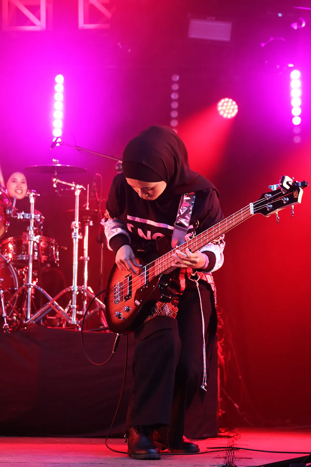 De show zit goed in elkaar, de meiden zijn niet verlegen en duidelijk blij met de grote opkomst. Ze stonden al eerder geprogrammeerd in Merleyn, maar ja – corona, dus de Europese tournee werd afgezegd. Nu zijn ze blij om alsnog in Nijmegen te kunnen spelen en nog wel voor een behoorlijk groot en gemêleerd publiek. En ze zetten er goed de vaart in, om de tijd die ze zijn verloren door de iets verlate start alsnog in te halen. Het strakke ritme van drummer Euis Siti Aisyah, de vloeiende baslijnen van Widi Rahmawati en het ruige gitaarspel met heldere zang van Firda Marsya Kurnia zorgen voor een stevige partij hardrock die geen moment verslapt en blijft boeien.