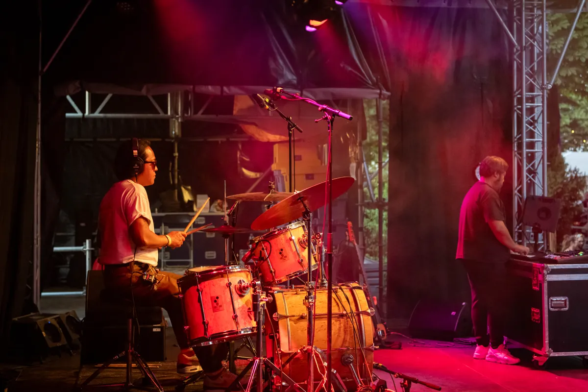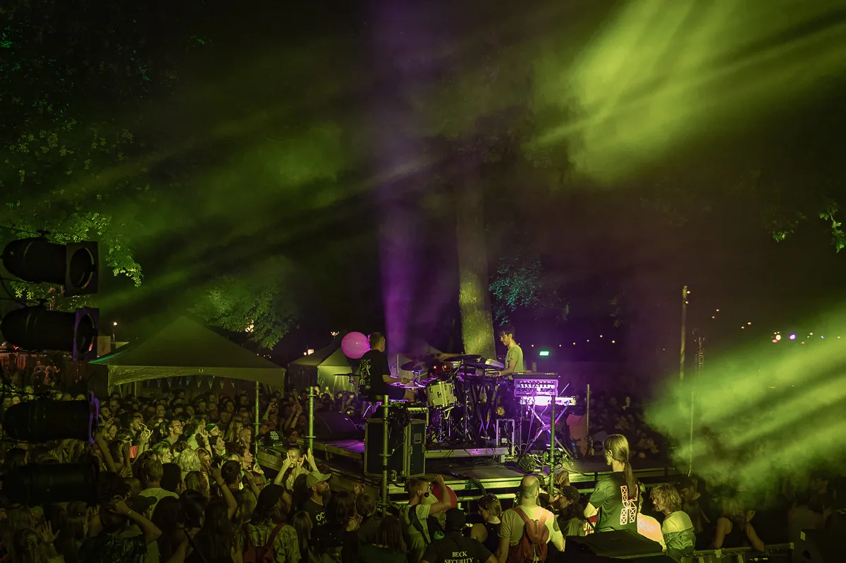 Na nogmaals vijftien minuten lijken die problemen ook verholpen te zijn, is het duo warmgedraaid, en de laatste twintig minuten kunnen Lander & Adriaan echt knallen. Dan bewijzen ze hoe goed hun mix van fusion jazz en oldskool rave werkt op een plek als dit, hoe ongelofelijk strak Lander kan drummen, hoe enorm funky en creatief het spel van Adriaan is, hoe goed ze op elkaar ingespeeld zijn en hoe knap ze de balans weten te vinden tussen muzikaal vernieuwend en aanstekelijke dansbaarheid. Het publiek dat de moeite heeft genomen om te wachten wordt beloond, gaat volledig uit hun plaat en beleeft twintig van de vetste minuten van het Valkhof Festival dit jaar.