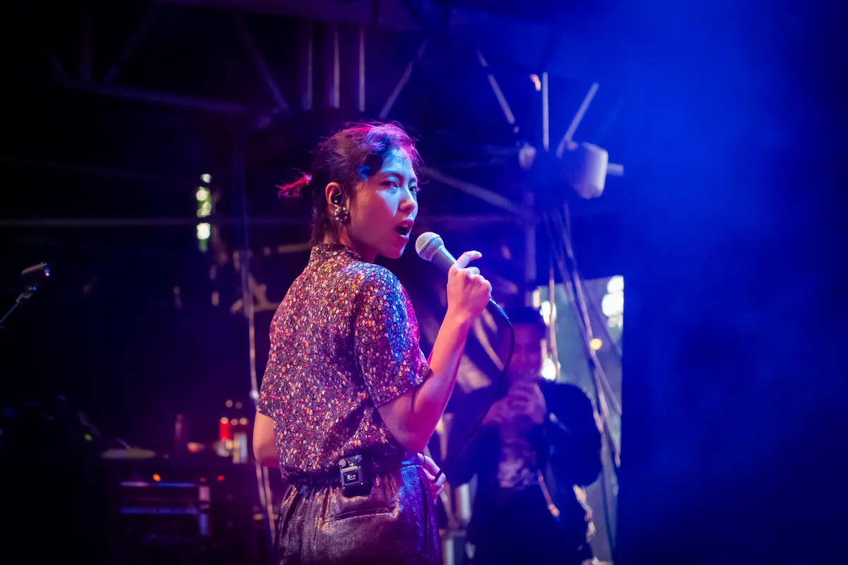 Het moet gezegd: de zomerse ritmes, vermengd met de Indonesische stadspopmuziek uit de jaren 80, werken in eerste instantie verkoelend op een broeierig Valkhof. Pulserende beats uit de synthesizer, een drummer die live die beats voorziet van een stevig ritme en een zangeres die het geheel omlijst met vocale melodieën (al zit er hier en daar een mislukte noot tussen).