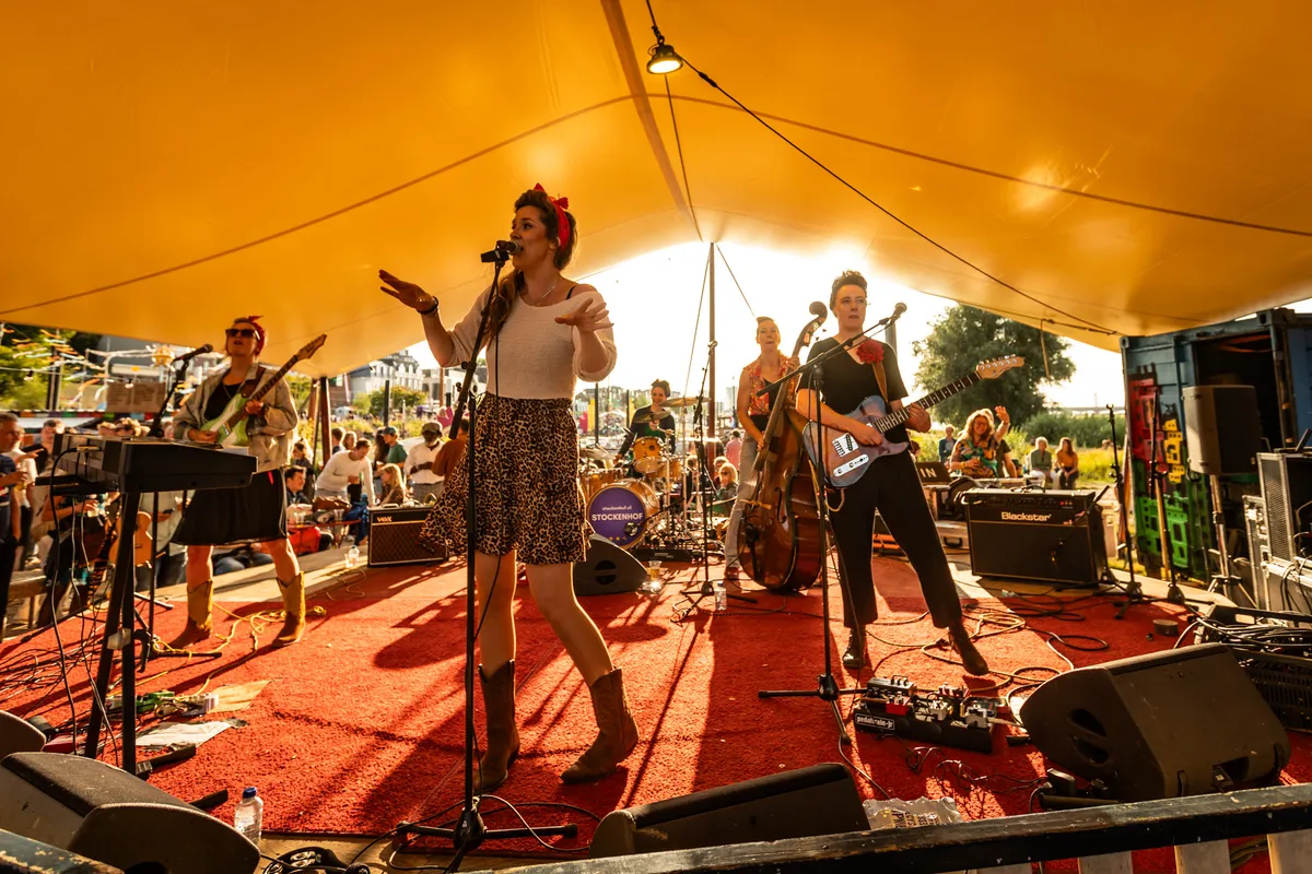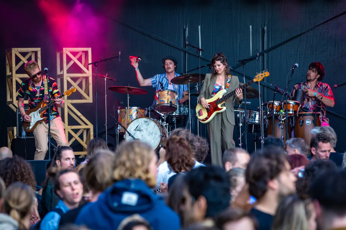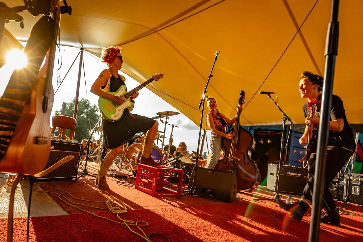 De setting is passend. De zandvlakte bij De Kaaij en de langzaam ondergaande zon bij de Waal roept vergezichten op van een verlaten American highway met aan weerszijden uitgestrekte prairies. Waar 's avonds in 'barns' woeste dansmuziek wordt gespeeld door een uitgelaten band voor een uitzinnig publiek. Okay, we zijn niet in Amerika, wel onder de Nijmeegse Waalbrug, maar het optreden roept een soortgelijk gevoel op. Opzwepende versies van 'Castles In The Sky', 'He Got Me', 'Soul Searching' en 'A Song Called Wanda' stuiteren van het podium waar naarmate de set vordert meer en meer bezoekers zich aan een dansje wagen.