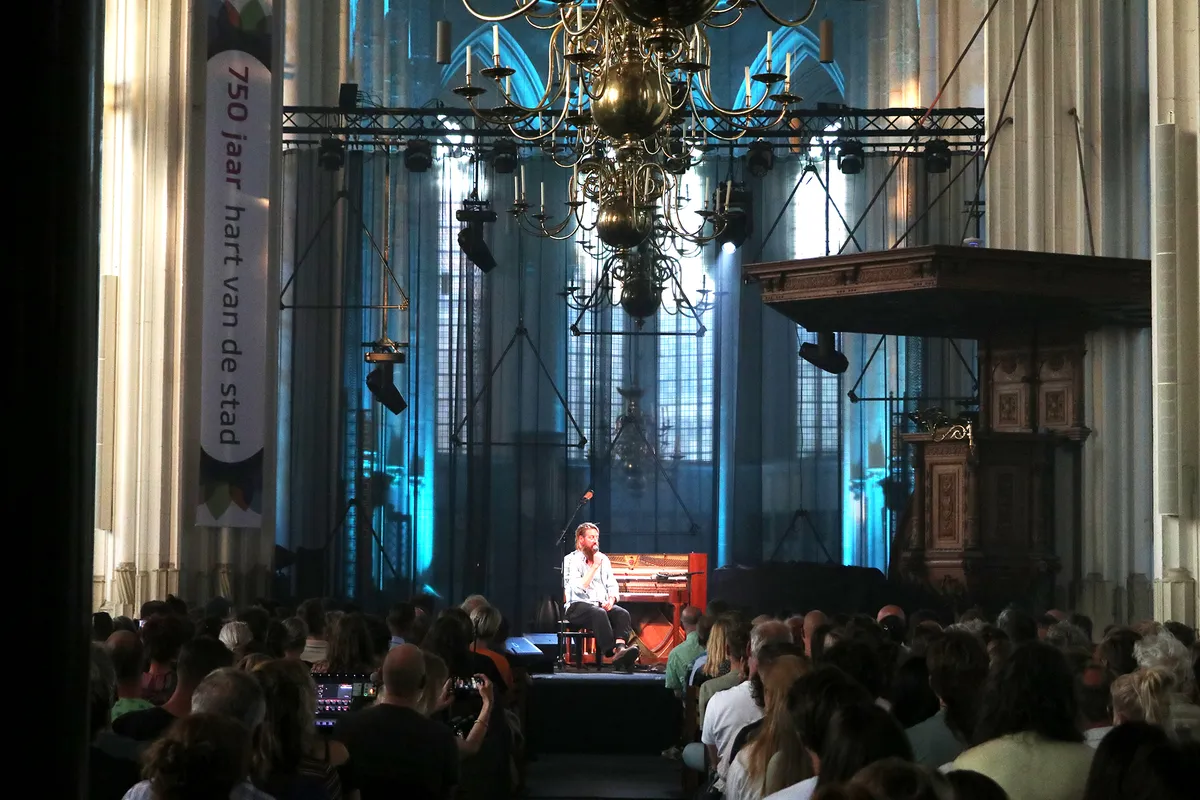 Waar uit de speakers bij de Grote Markt Hazes en Froger klinken, strijkt het publiek nog geen honderd meter verder neer in de Stevenskerk voor de instrumentale pianomuziek van Joep Beving. Het verhaal van Beving is hartverwarmend, zelfs sentimenteel te noemen. De componist erfde de piano van zijn oma en het was dat instrument dat Beving leerde licht en verfijnd te spelen. Dat verfijnde werk brengt hij ook naar het hectische Nijmegen dezer dagen. “Onderweg hierheen snapte ik waarom jullie even bij mij komen schuilen,” zegt de grijnzende pianist vlak na het openingsnummer ‘La Fee Verte’. En dat is wat het publiek doet. Beving speelt en speelt, neemt zijn tijd en wacht op de (vaak hoge) verrassende akkoorden om het publiek alsmaar opnieuw te intrigeren.