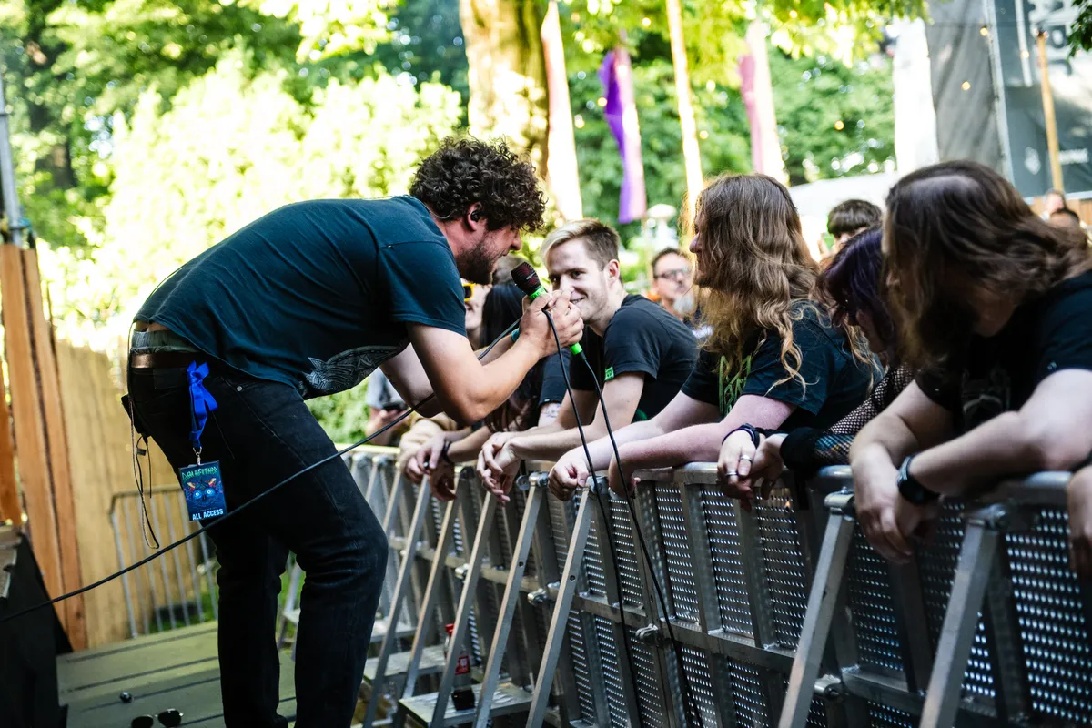 Wolvennest is in tien jaar tijd uitgegroeid tot een graag geziene gast op de stevigere festivals. Toch is het even schakelen als de band vanavond begint: na uren van gas geven met hardcore/punk-bands wordt het tempo flink teruggeschroefd met deze hoofdzakelijk door doom en sludge geïnspireerde set. Vul dit aan met psychedelische synths en het Valkhof is omgetoverd tot een rommelend, spookachtig landschap.