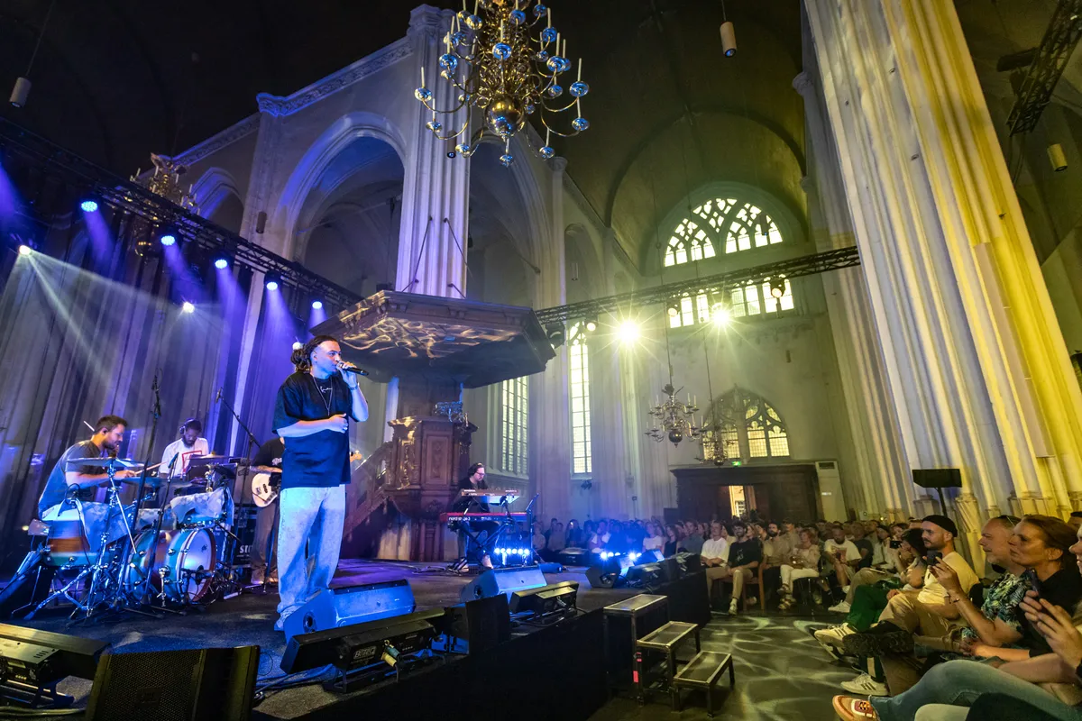 Acht jaar geleden stond Fresku ook in de Stevenskerk en toen was het onwennig, een hiphop zitconcert is iets wat zowel rapper als publiek vreemd is. Deze keer weet iedereen wat ze kunnen verwachten.De band begint met enkele rustige nummers, voornamelijk van het album In Het Diepe. Deze songs lenen zich goed voor in de kerk. Fresku is een beetje nerveus, altijd, twijfelen aan wat gaan de mensen vinden, misschien is er wel weer een recensent in de zaal. Maar hij is vooral blij dat er zoveel mensen zijn, man en vrouw, jong en oud, wel nog steeds voornamelijk wit. Hij voelt de liefde en de energie.