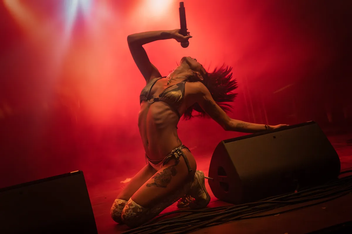 Isabella Lovestory is een reggaeton-artiest uit Honduras. Of eigenlijk maakt ze perreo-pop, een manier van dansen die in het Nederlands het best vertaald kan worden als ‘het op de heupen hebben’. Dat het vanavond laat op het Bloem-podium niet alleen om de muziek gaat, maar ook om de show, is vanaf het eerste moment duidelijk. “My hips don’t lie,” zong Shakira ooit, en voor Isabella geldt dat al helemaal. Na het tweede nummer is het kostuum al half uit en de body workout nog maar net begonnen.
