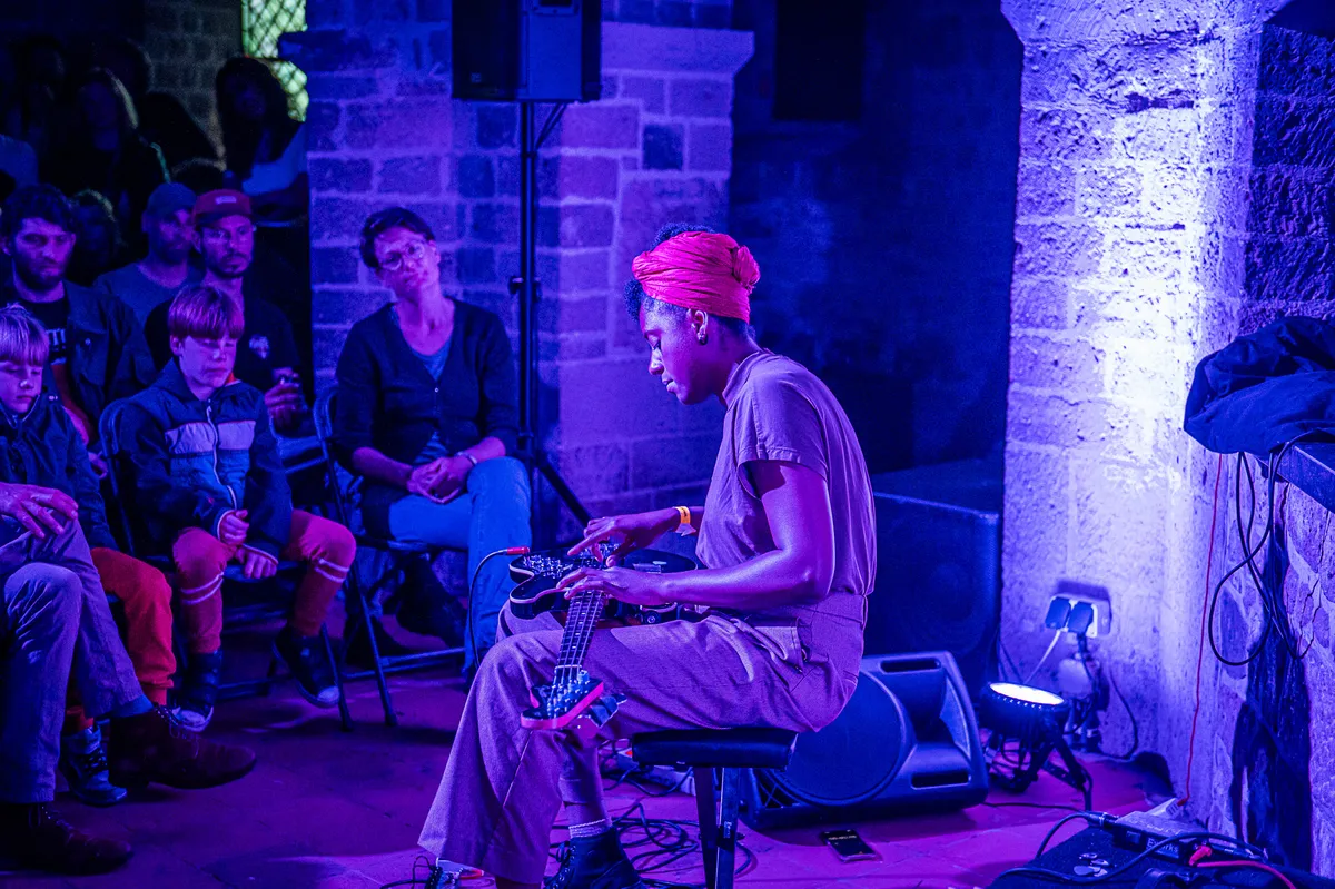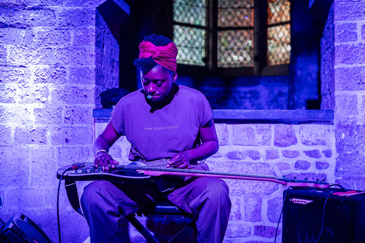 Als de kapel op het Valkhof volstroomt met mensen, begint Amadou te spelen. Ze gaat zitten, pakt haar basgitaar en kijkt niet meer op of om. Het publiek wordt meteen meegezogen in het optreden.