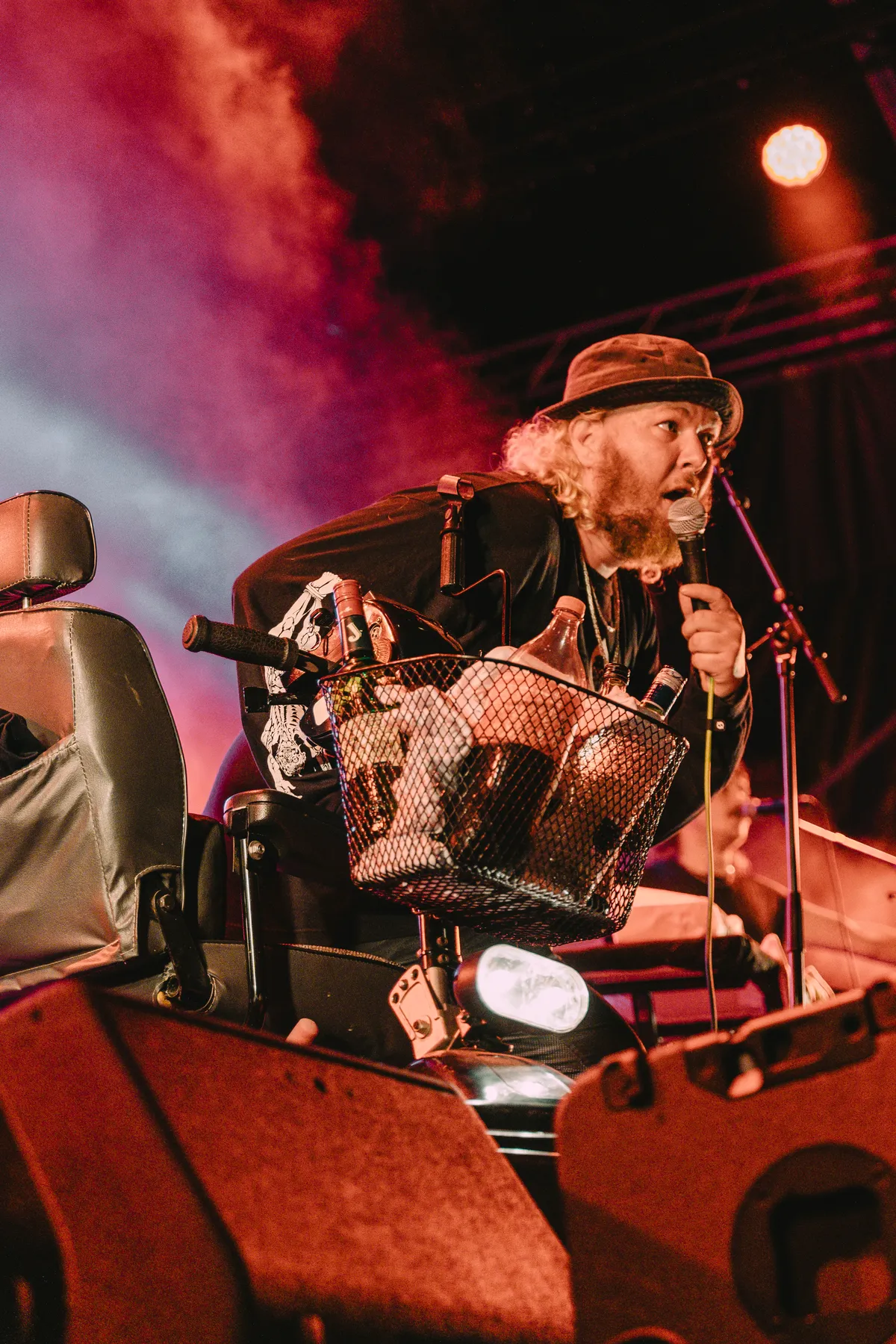 De nummers van Kaboutertje putlucht zijn precies helemaal over het randje en daarom zo lekker. Ze gaan over de dingen die we allemaal wel eens denken, maar nu worden ze over het publiek geschreeuwd. En dat publiek schreeuwt en springt mee. Nummers als ‘Geen empathie’ en ‘De Henny roast’ worden met luid gejoel en heen en weer vliegend wc-papier ontvangen. De muziek die ze maken kan worden omschreven als punk, met een snufje wave, afgetopt met een dikke ravesaus, de perfecte combinatie als afsluiter van de dinsdag op het Valkhof Festival.