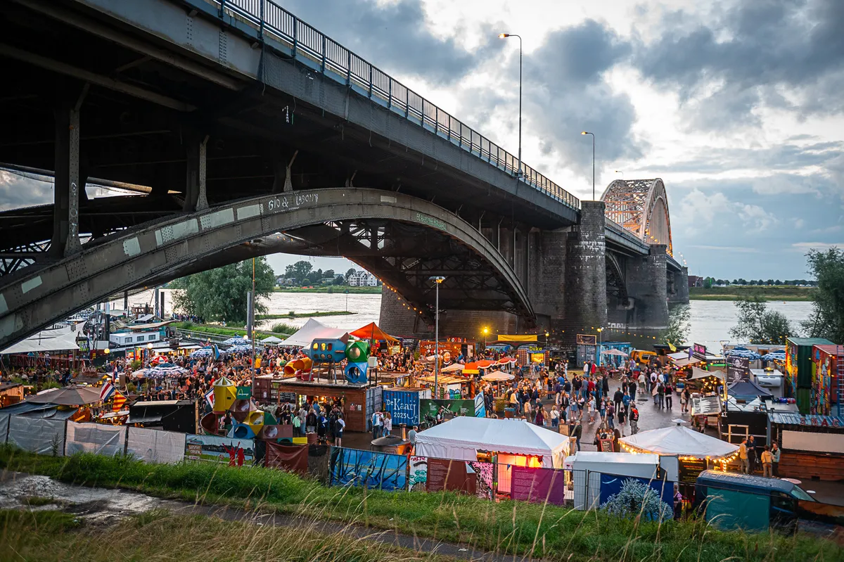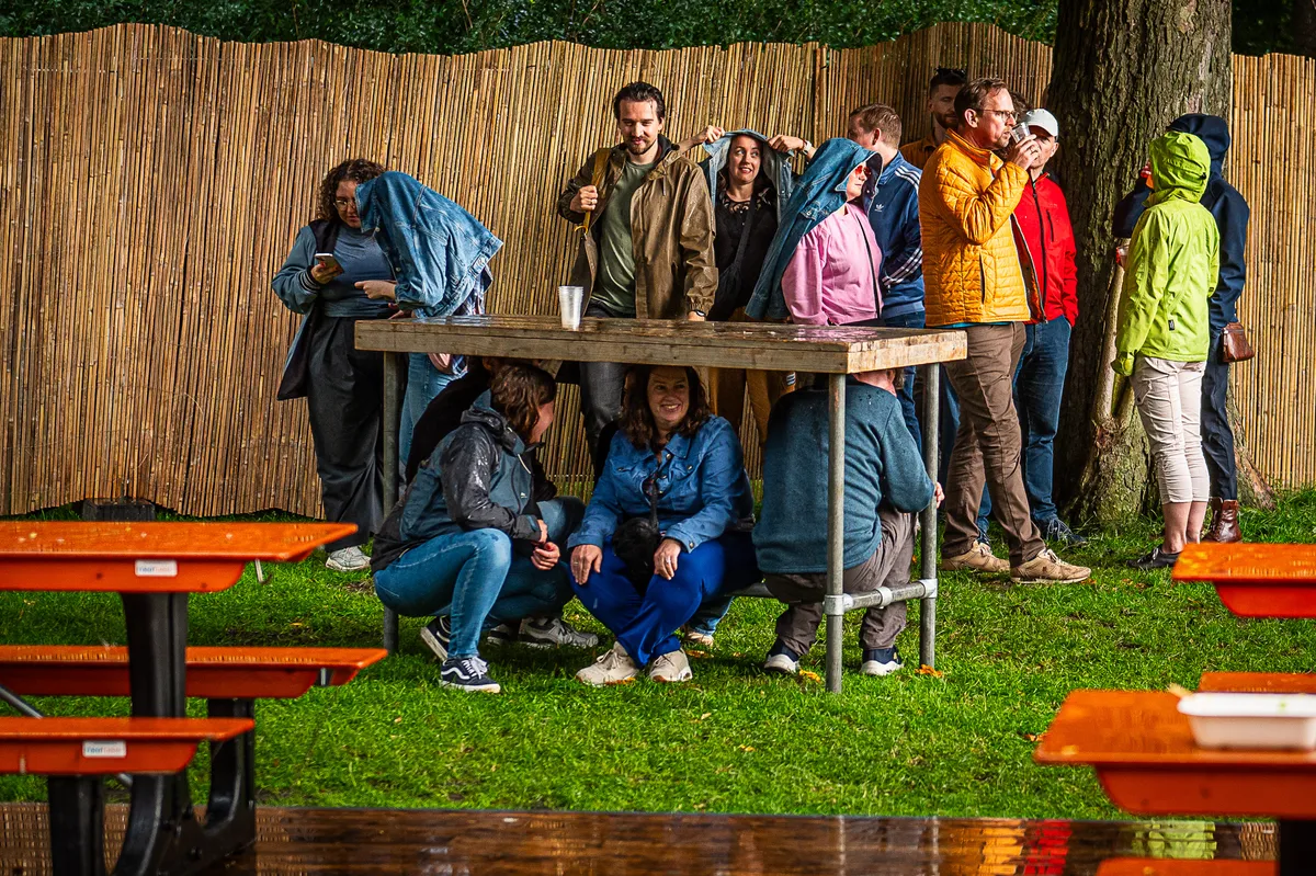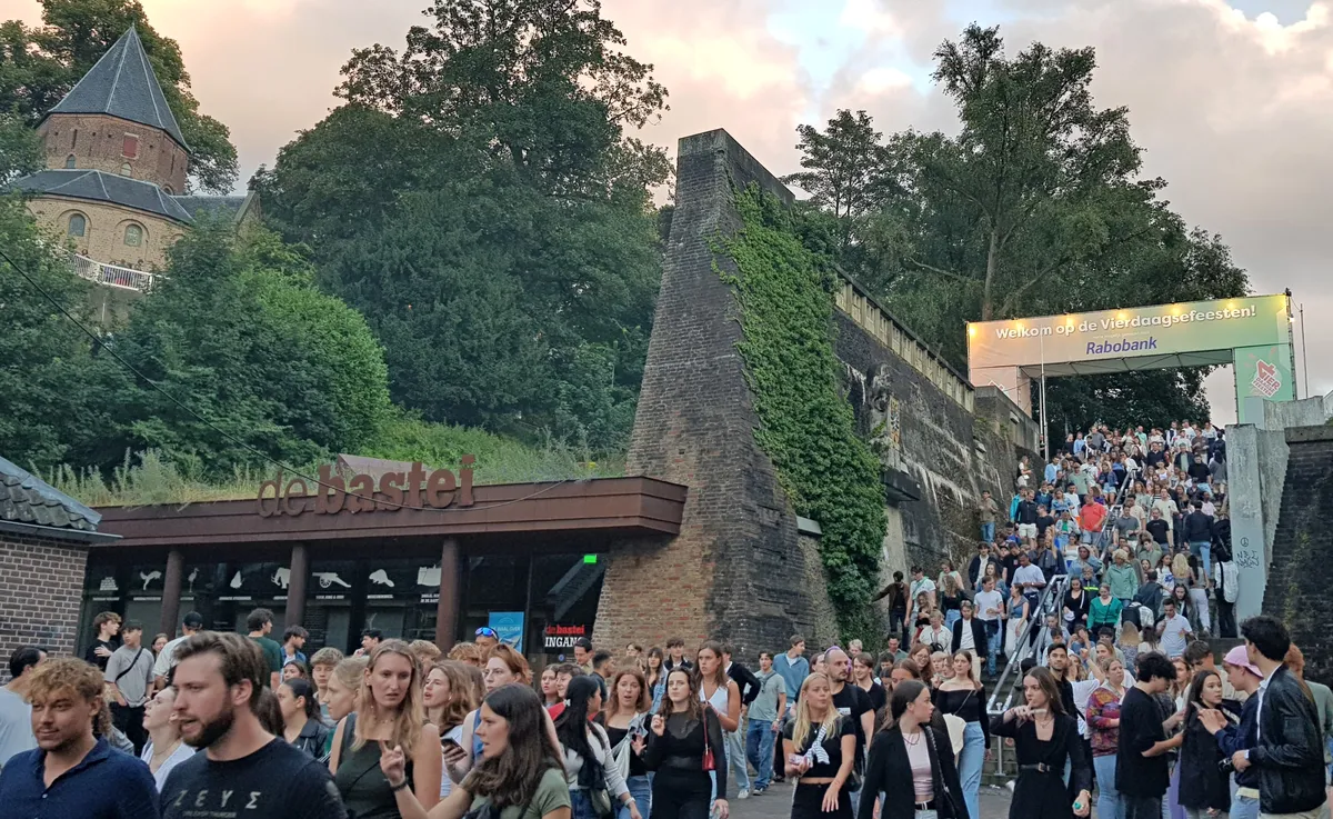 De wandelaars van de Vierdaagse vertrokken in prima weer voor hun eerste dag, maar bezoekers van de Vierdaagsefeesten hadden 's avonds iets minder geluk. Met bakken viel het uit de hemel tussen kwart over zeven en half negen. Regen en modderpoelen of niet: het deerde het publiek niet dat in grote getale weer in de stad indook. De dinsdag in foto's.