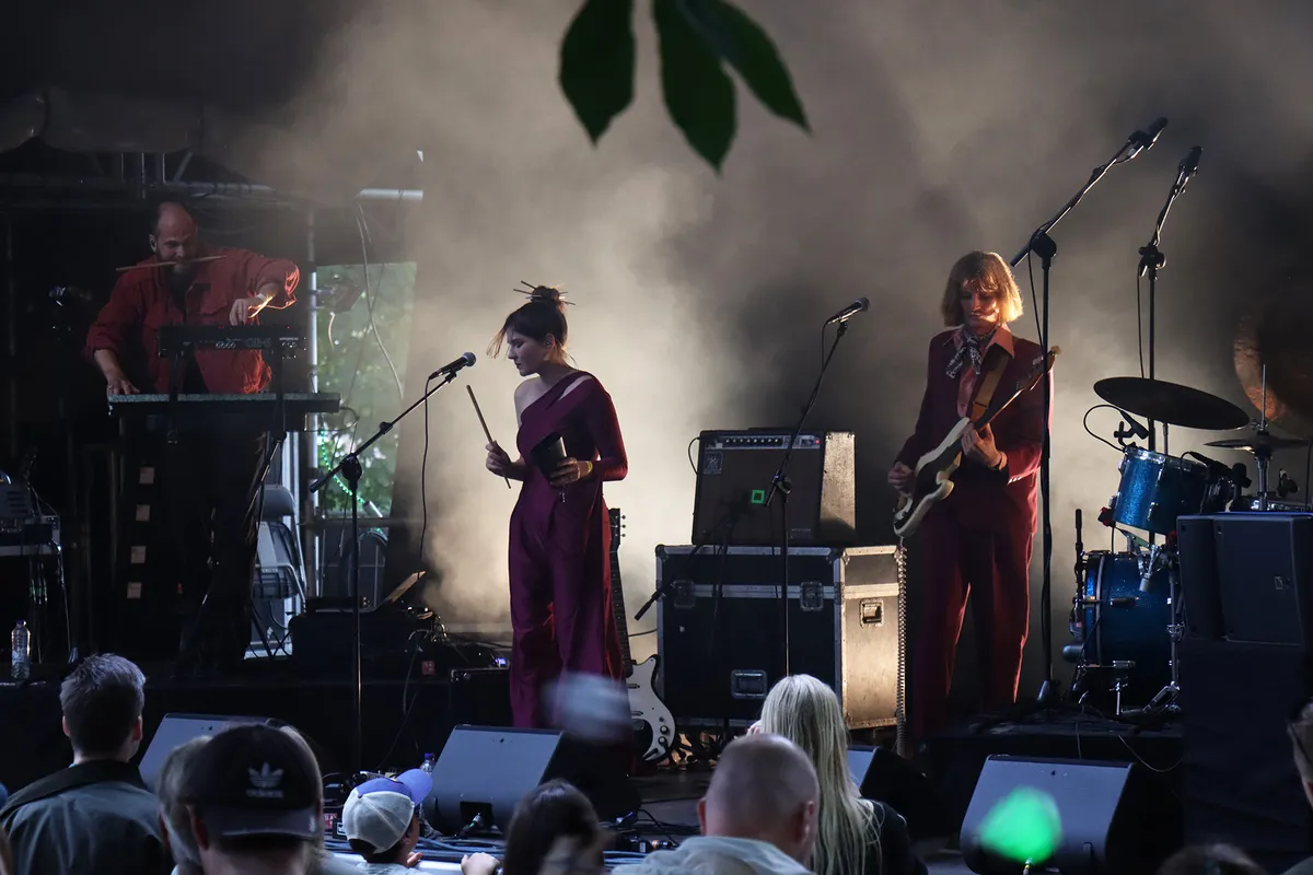 Odhil laat zich gelukkig niet intimideren door het aanvankelijk nog niet zo gevulde veld tegenover haar en haar statige presentatie weet ons snel mee te voeren in dromerige sferen. Muzikale hoogtepunten zijn ingetogen nummers als het Angel Olsen-achtige ‘Wild Maroon’, maar die moeten helaas wel concurreren met het soms wat luidruchtige kippenhok voor het podium. Het zijn dan ook de meer dansbare beats van ‘Murderabilia’ en ‘In the Dark’ die het uiteindelijk toch een stuk voller gestroomde veld het meest in beweging krijgen. Onder de streep zijn we toch even meegenomen naar een mooie donkere, muzikale oase voordat de feestblazers van Florence Adooni op het Arc-podium de boel weer overnemen. (MD)