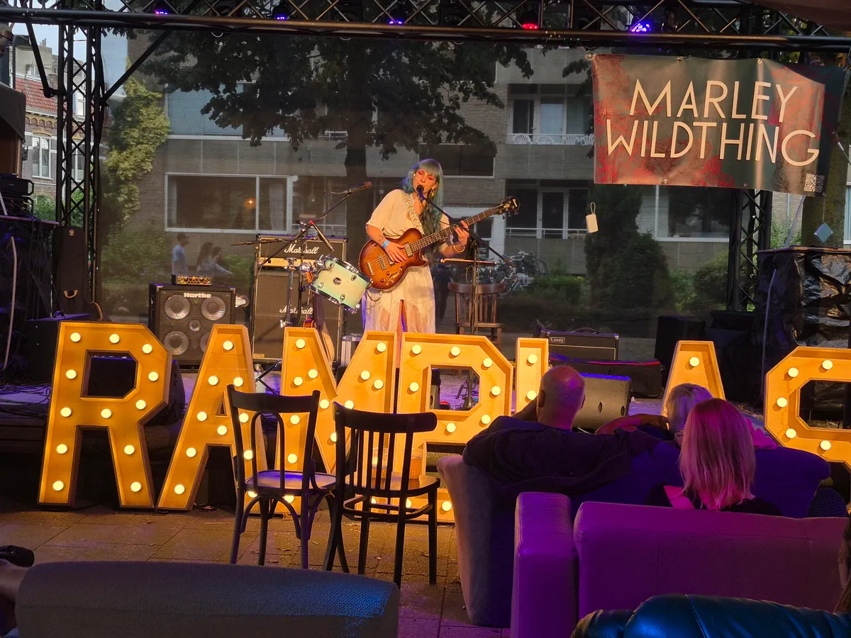 Het is een ondankbare taak: spelen op de Ramblas tussen 18.00 uur en 19.00 uur. Treinladingen aan mensen die vooral willen feesten komen schreeuwend langs en even verderop staat een dweilorkest. Toch weet Marley Wildthing mensen even te doen stilstaan of te doen aanschuiven in de tent op de Ramblas en het dweilorkest naar de achtergrond te spelen. De zangeres is een dromerige verschijning: met haar lange blauwe haar en witte jurk, lijkt ze zo uit een sprookjeswereld te komen. Ze maakt al haar muziek zelf. Ze ‘loopt’ haar eigen stem, ukelele, bas, gitaar en drum zo aan elkaar dat het lijkt of er een hele band staat. De instrumenten wisselen zich af en toe in hoog tempo af en ze weet het publiek te binden met haar warme stem (met brede reikwijdte) en bijzondere nummers. Marley wisselt haar eigen nummers af met covers.