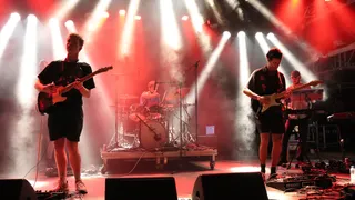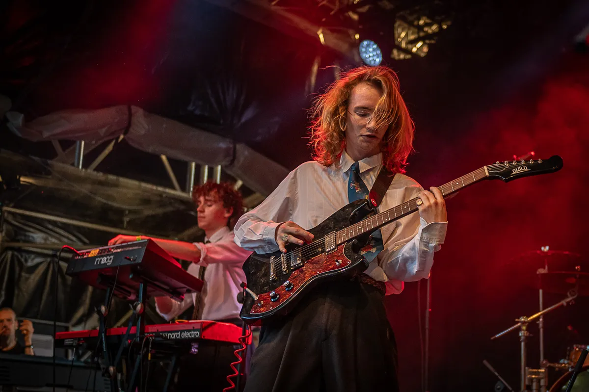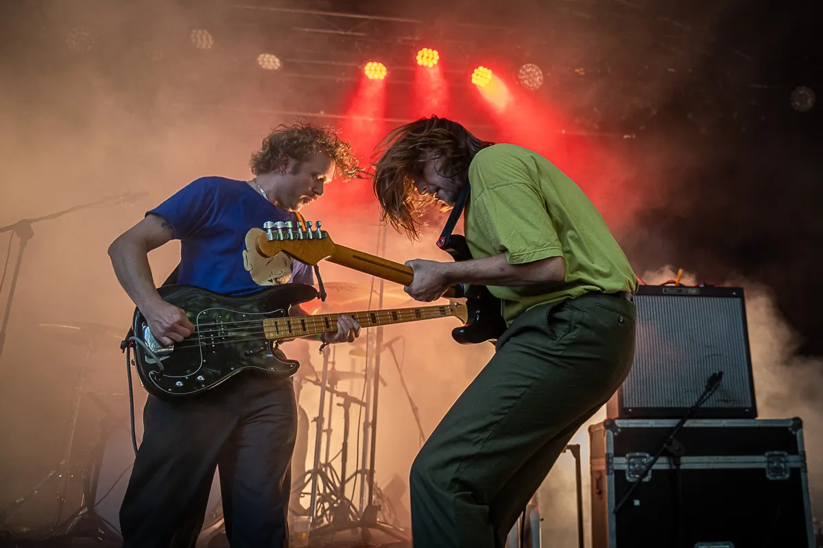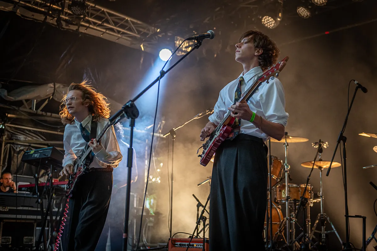 Rechts op het podium begint een klein LED display de naam 'Competition' te spellen en onder de klanken van de soundtrack van Super Mario 64 beklimmen de vier heren het podium. Met de staat van dienst van deze muzikanten kan het eigenlijk geen verrassing zijn dat we getrakteerd worden op een mix van heerlijk schurende, stuwende post-punk en indierock. Denk een liefdesbaby van The Strokes en Fontaines DC die geadopteerd is door Franz Ferdinand. Voor een eerste optreden zit de show van Competition enorm goed in elkaar. Geluid, licht, de praatjes, alles klopt al. Echt alles? Tijdens een liedje over gepest worden scheurt gitarist Guus Timmermans (voorheen Foxlane) uit zijn broek. Onfortuinlijk, maar zelfs dit is (per ongeluk) zeer goed getimed. Als je zelfs je foutjes goed kan timen, belooft