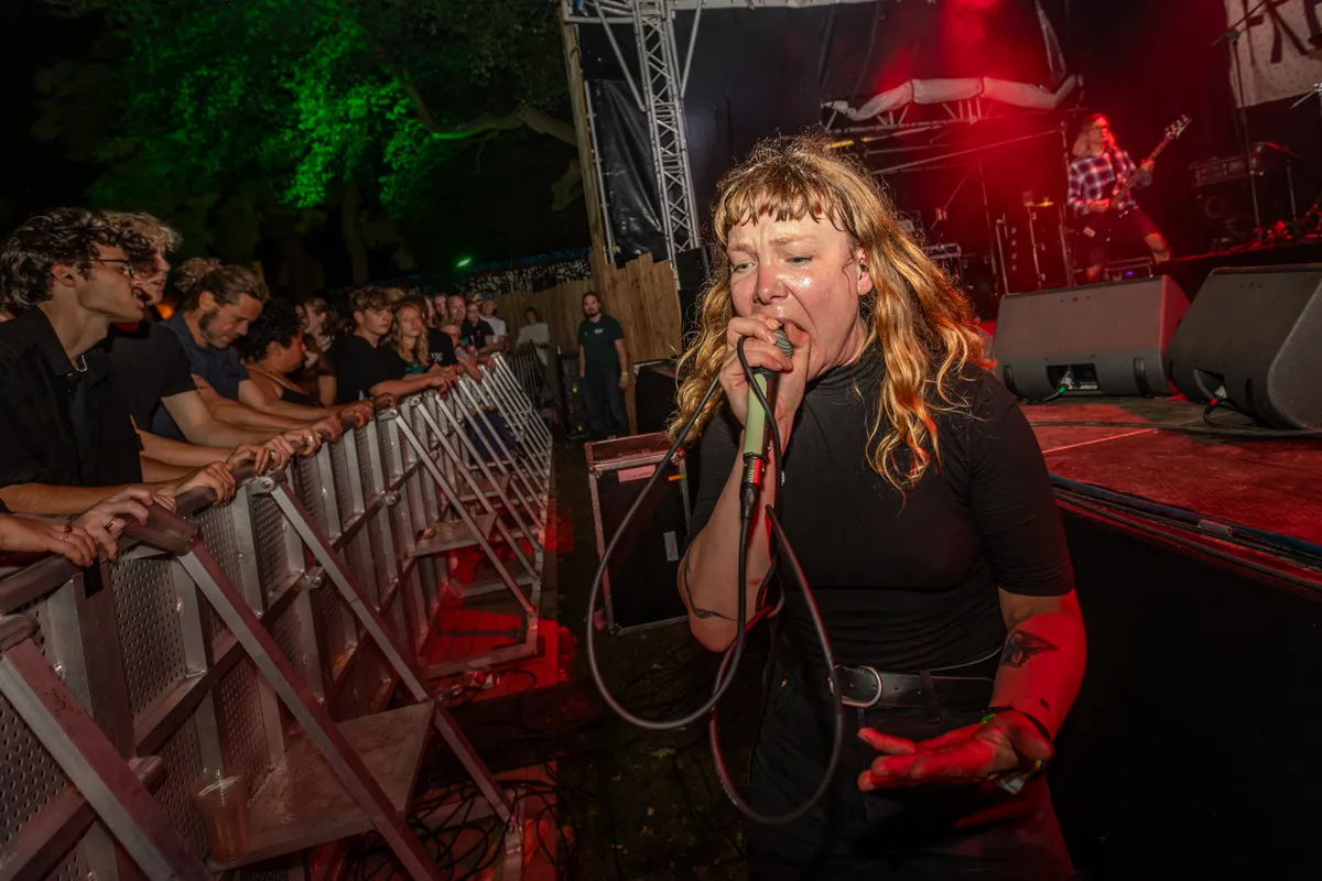En wat een furieuze en pakkende schop-in-gezicht-razerij stort de band over het Valkhofpark uit. Geen Bob Vylan-achtige taferelen (hallo Glastonbury) vanavond, maar de boodschap van de hardcore punkband is er niet minder om. Oust komt deze donderdag verdomd dichtbij, en niet alleen omdat frontvrouw Sanne vaker op het veld staat tussen de bezoekers dan op het podium. Maar vooral omdat die rauwe woede, die razerij, die boosheid zelden zo tastbaar is overgebracht als vanavond. Oust brengt een felheid en drift met zich mee die het publiek na een half uur volkomen uitgeput én voldaan achterlaat. Grote klasse. (PSB)