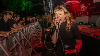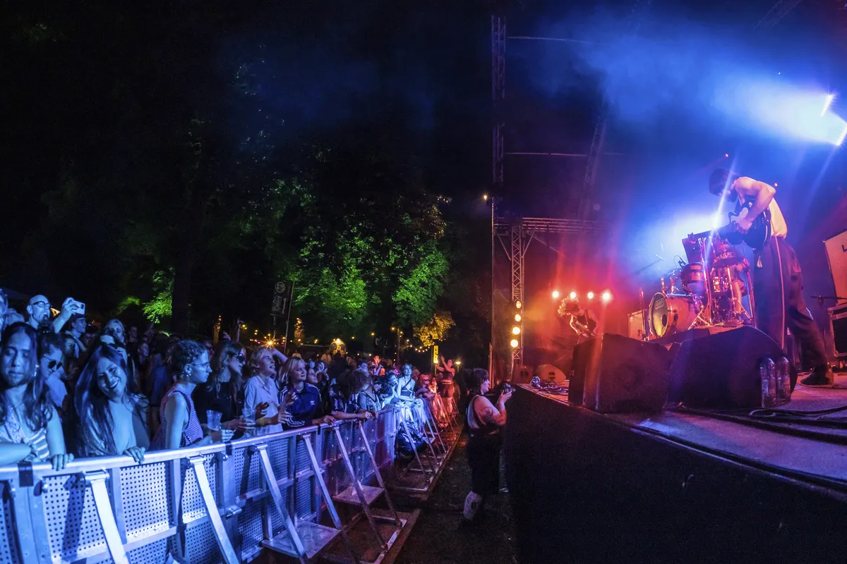 Kort een aantal hoogtepunten: Mart Boumans die na een geweldig glibberige versie van 'All is Dull' (De Staat) zijn kop ter plekke kaal laat scheren door twee danseressen die net nog om hem heen kronkelden. Of wat te denken van Service, het duo van Sam Cuppen en Charlotte Hofman dat klinkt als DEVO voor de tiktokgeneratie die iedereen aan het springen krijgt. Of het optreden van Kaboutertje Putlucht waarbij de frontman verkleed als boterham een stagedive doet.