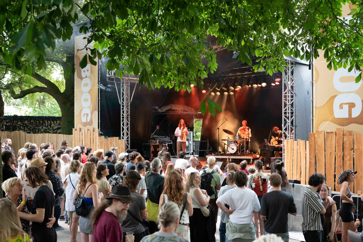 De zondag van de Vierdaagsefeesten 2025 staat in het teken dat de vierdaagselopers op de Wedren in de rij staan om het bandje te scoren. Muzikaal gezien een dag met jazzy vrije geluiden tot aan psychedelische Anatolische folkmuziek. Gelukkig trekt de regen en het onweer net boven Nijmegen, blijft droog en gezellig. De fotografen van 3voor12 Gelderland doen weer verslag van al dit moois. Een impressie van de zondag in foto's.