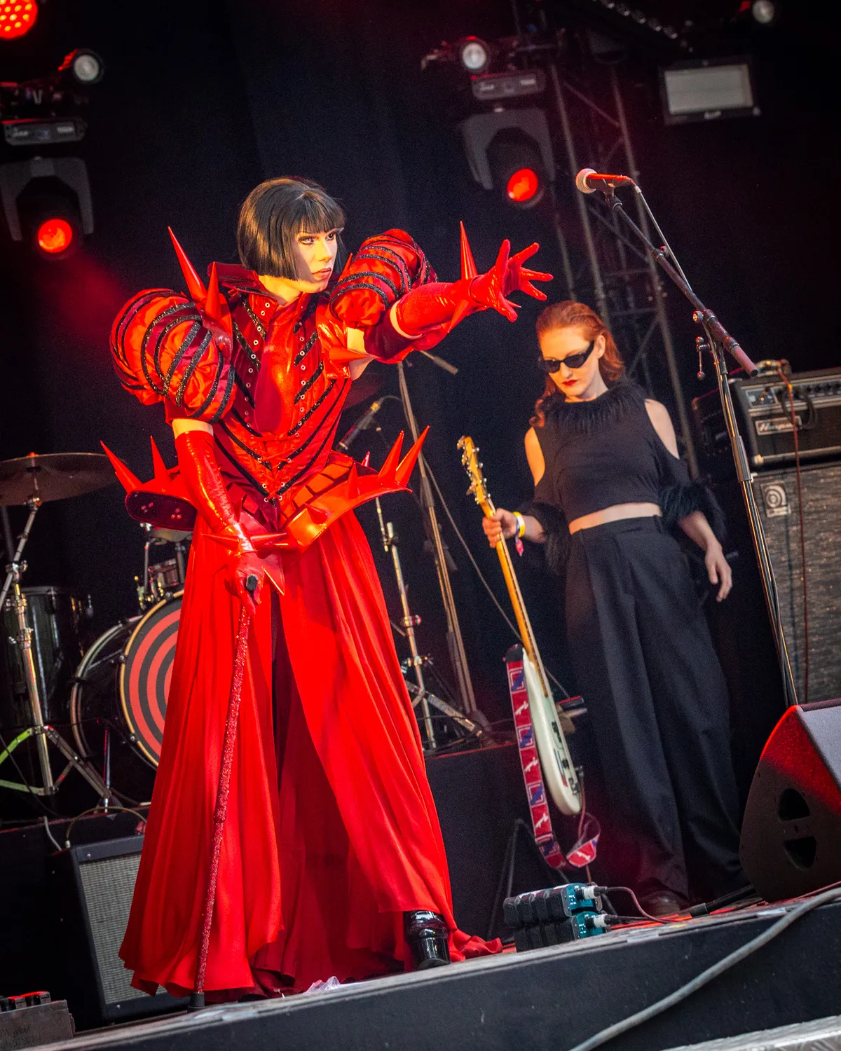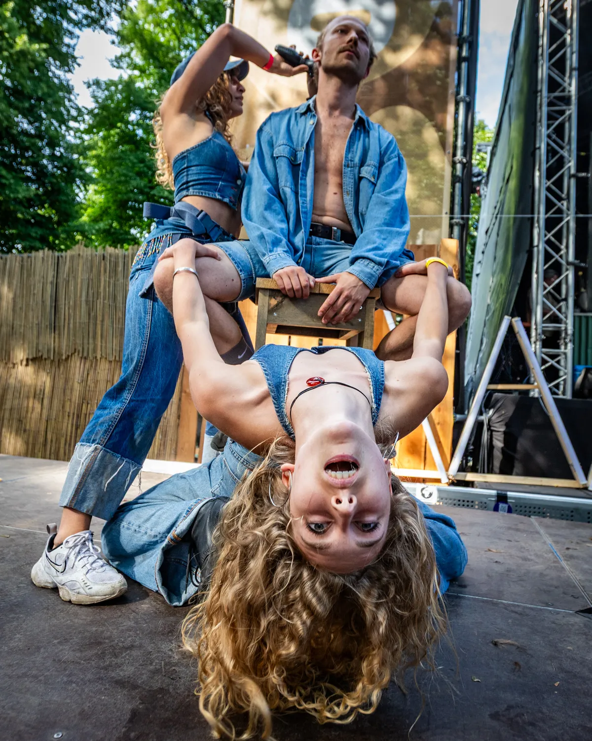 De toon is gezet en de boel ontaardt vervolgens in mum van tijd in een volslagen pandemonium. Na een energiek optreden van Misprint samen met Politie Warnsveld richten we onze ogen op het terras naast het podium, waar vandaag voor de gelegenheid een extra stage van gemaakt is. Op de catwalk die de twee podia met elkaar verbindt, staat daar ondertussen Tom Forever (Bumble B. Boy) klaar. Omringd door een drietal grote spiegels stuitert hij in een muzikale wervelwind over de catwalk met een knotsgekke performance.