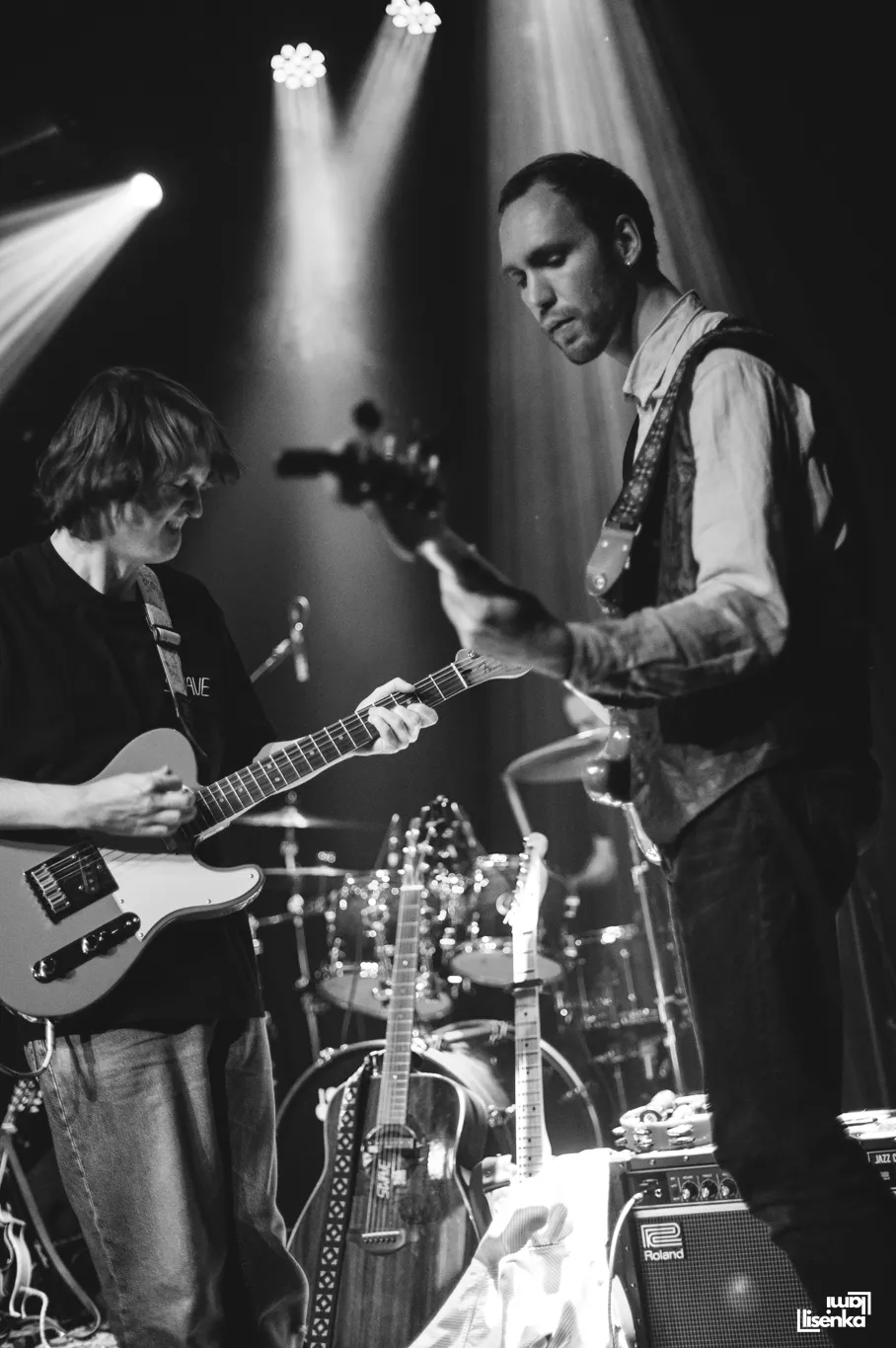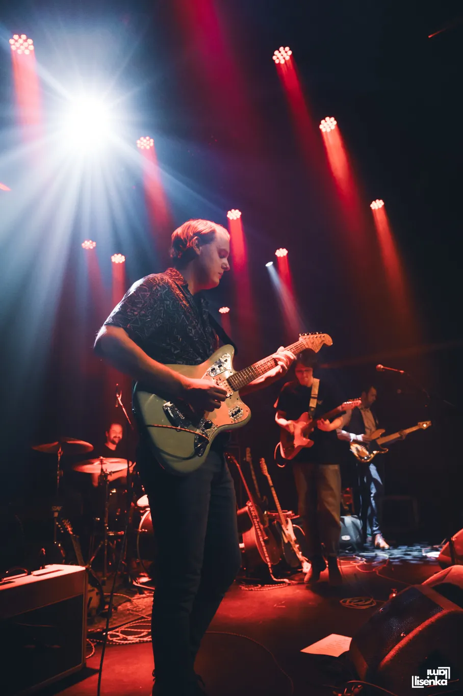 Met zeven bandleden en ook nog een drumstel, een keyboard en een handjevol gitaren lijkt het podium eigenlijk net wat te klein voor de band, maar eigenlijk zorgt het, in mijn optiek, voor een gezellig en sfeervol beeld zo op het podium. De bandleden staan dicht bij elkaar, wat zorgt voor veel interactie en een knus gevoel dat aansluit op de muziek