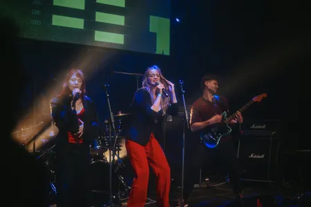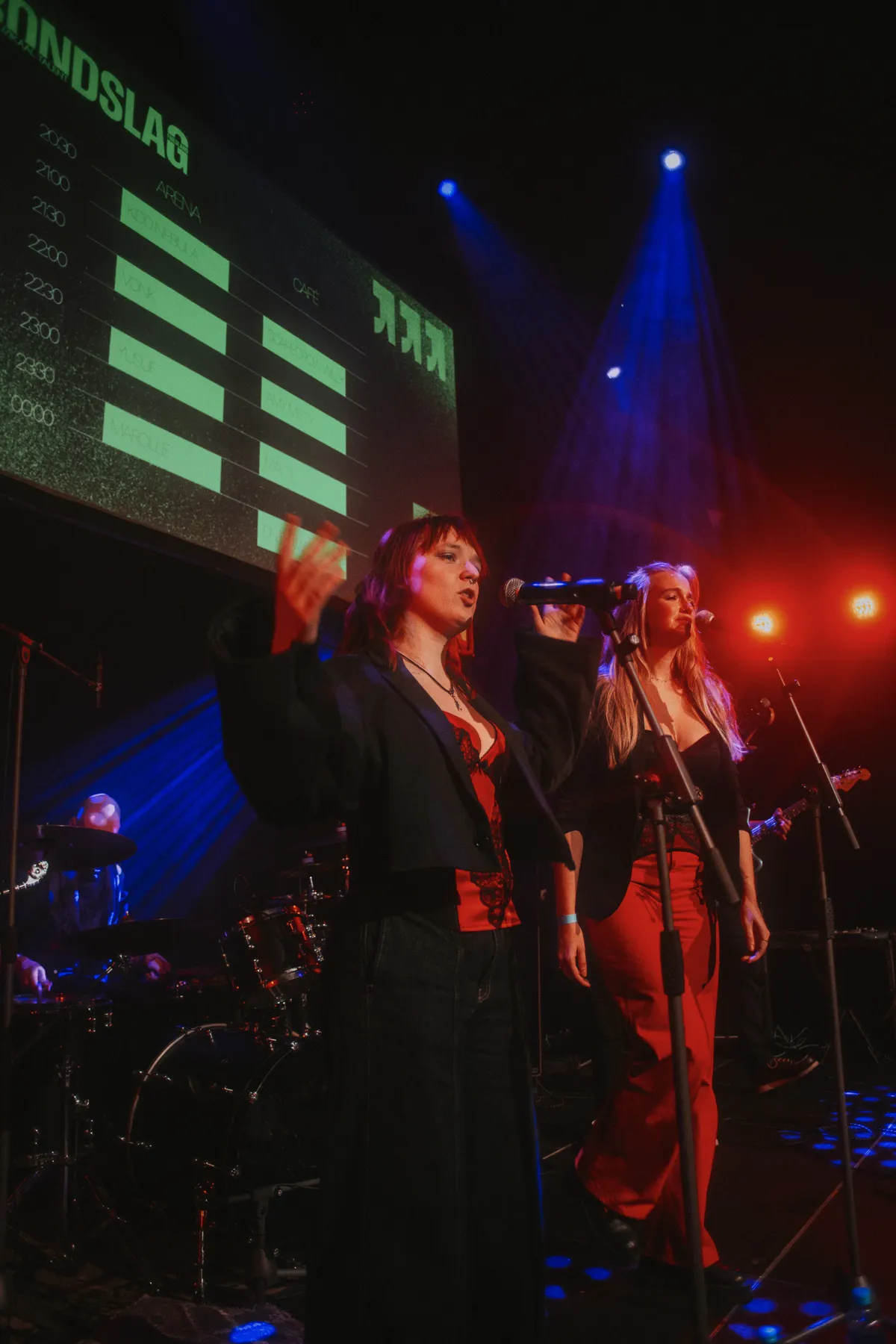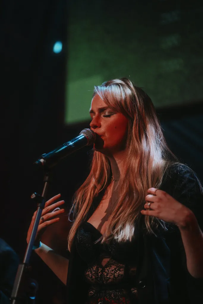 De inmiddels zeskoppige band VONK bestormt het podium voor deze show met twee nieuwe zangeressen. De band maakt energieke poprock die instrumentaal goed in elkaar zit. Over het visuele aspect is ook nagedacht: het rood in de outfits van de frontvrouwen complimenteert elkaar, en matcht de kleur van de gitaren. De balans in de zang was helaas wat onduidelijk tijdens de show. In deze samenstelling leken de verschillende stemmen elkaar niet volledig aan te vullen en zouden zij individueel wellicht beter tot hun recht komen. Het catchy, opzwepende samenspel tijdens de show krijgt het publiek in ieder geval snel enthousiast en er wordt tijdens het optreden gezellig gedanst.