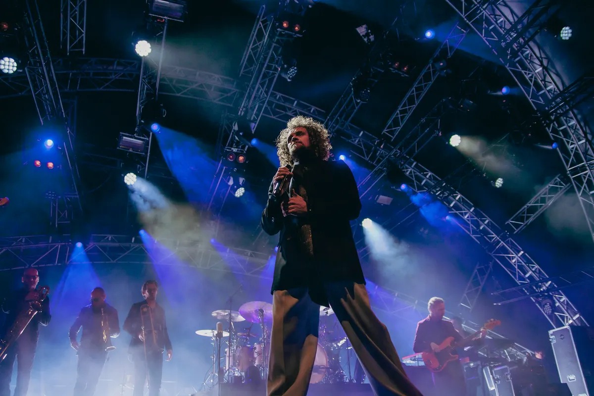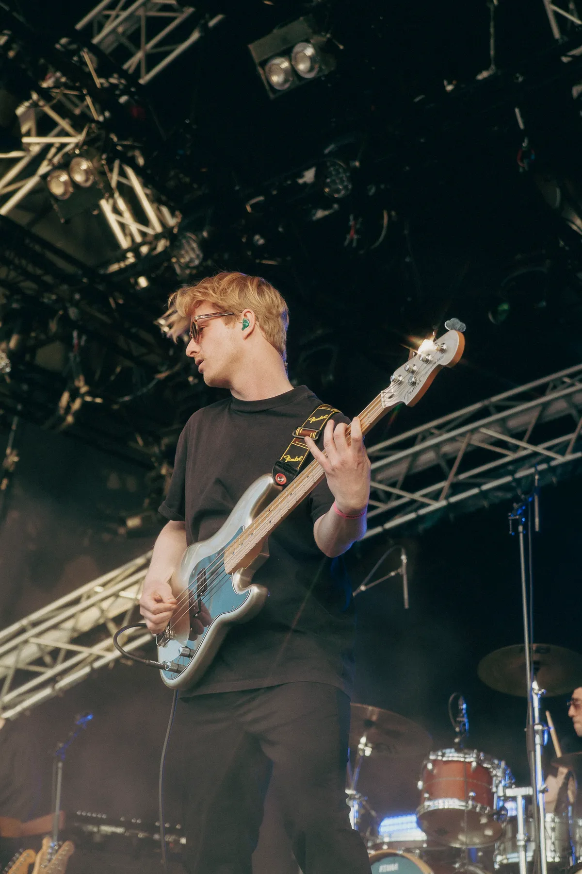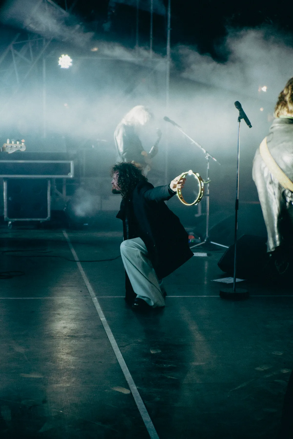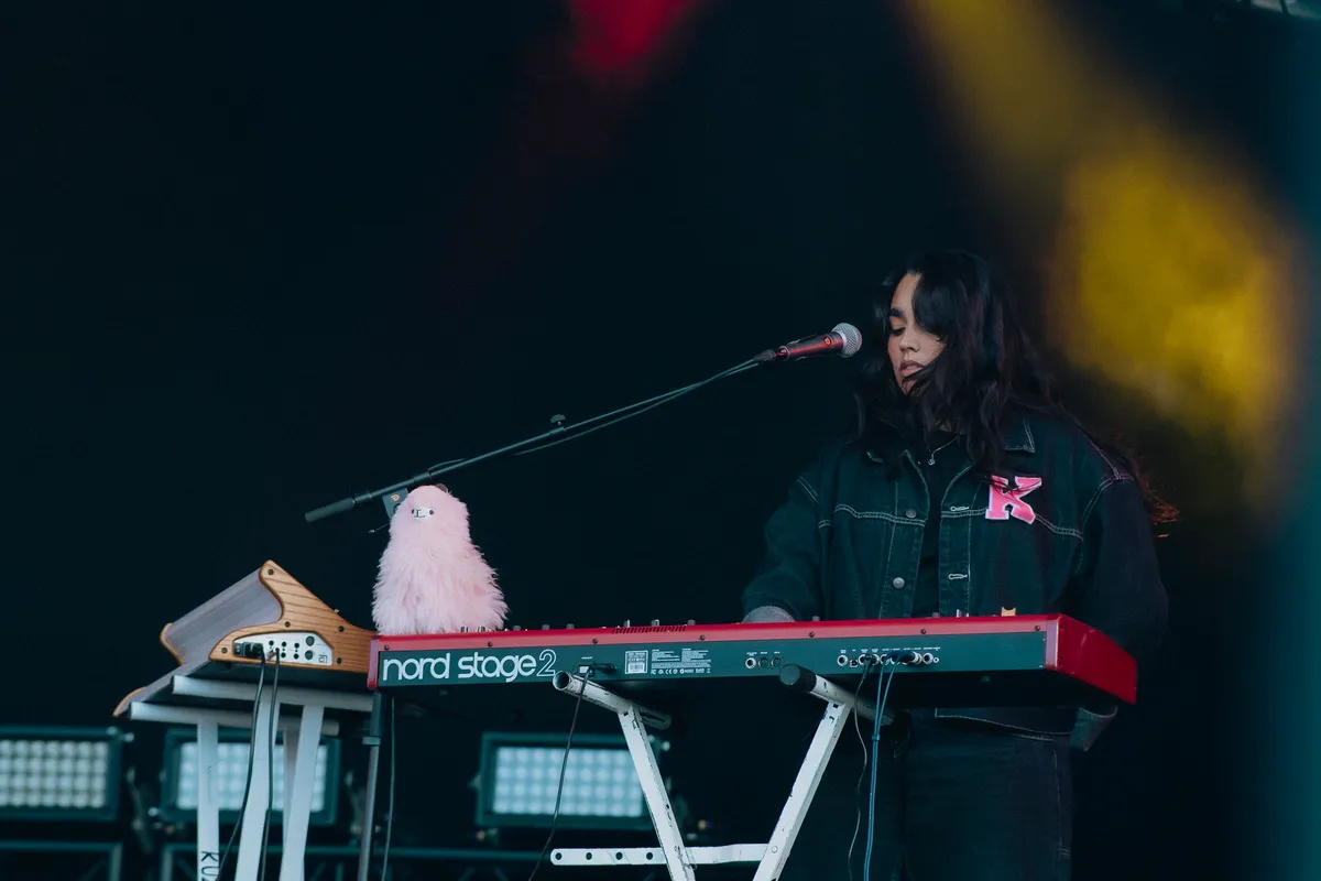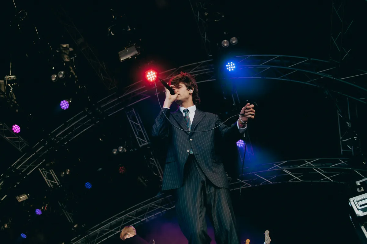 De eerste artiest die vanavond mag spelen is KUZKO. Al vooraf is het podium versierd met alpacaknuffels, en het belooft daarom ook in ieder geval een gezellig optreden te worden. Het is op het veld vooraan nog verrassend rustig wanneer de bandleden het podium betreden. Het duo heeft als begeleiding een drummer en een toetsenist meegenomen. Direct vallen de foute glitterpakjes van de twee vocalisten op, maar het valt ook op dat deze band vanaf het begin geen enkele fout maakt. De zang is zuiver en de muzikanten spelen elk nummer strak, maar zorgen ook dat er ruimte is voor plezier door het hele podium te gebruiken en door samen gesynchroniseerde danspasjes te doen. Ook de sketches tussen de nummers door vallen op, want die zijn in groten getale aanwezig, bijvoorbeeld wanneer de zangeres voor het nummer ‘Pills’ een pilletje aangereikt krijgt door de frontman, die ze met water doorslikt. Of bij het nummer ‘The Singer Wants the Drummer’, waar diezelfde frontman de zangeres aan het einde de backstage in tilt om pas een aantal minuten later terug te keren op het podium. Hoewel al die sketches tussendoor zouden kunnen afleiden van de show of lichtelijk ongemakkelijk kunnen zijn, is dat bij KUZKO geen enkel moment het geval. Voor het laatste nummer vraagt frontvrouw Danique het aanwezige publiek naar voren te komen, en gelukkig doet het Doetinchemse festivalpubliek dat, om zo nog één keer mee te kunnen springen op deze gigantisch leuke liveband.